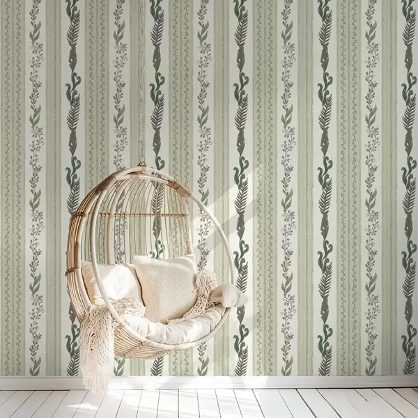 Behang Strepen met takken in groene en grijze tinten, zacht contrast Nr. a00824