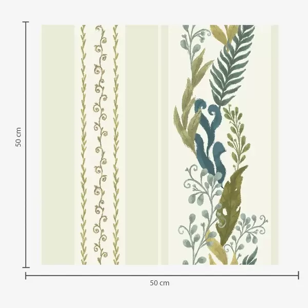 Behang Brede strepen met schilderachtige takken in blauw-olijfkleurige tinten Nr. a00825