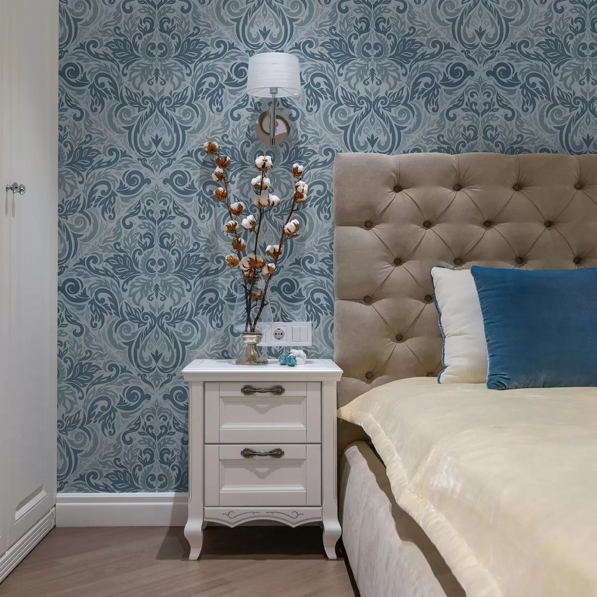 Behang Klassiek damast, diepblauw op lichtblauw Nr. a00826