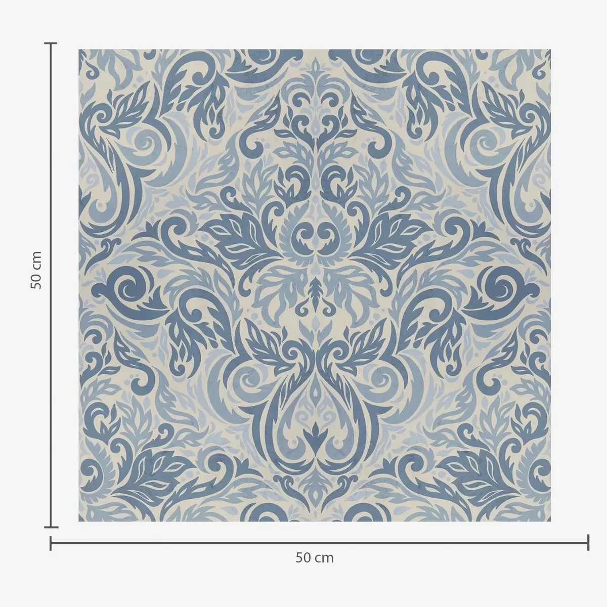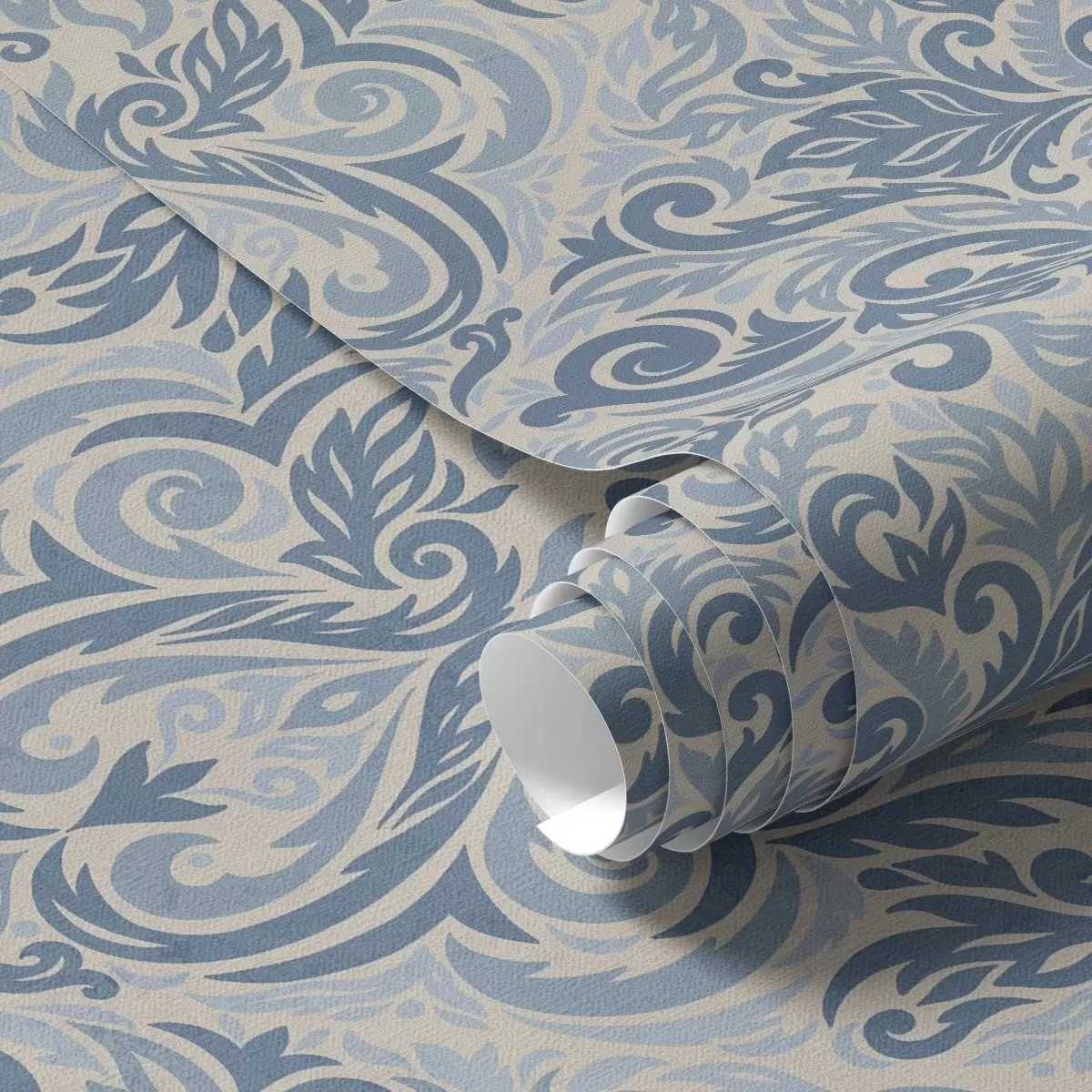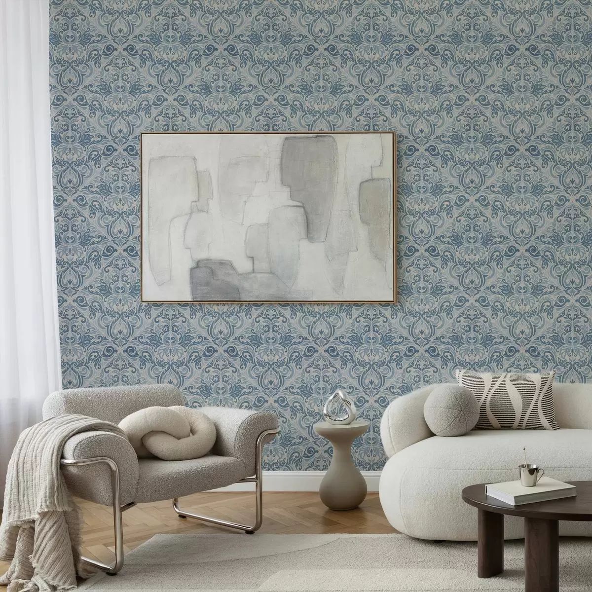 Behang Klassiek damast, blauwe motieven op crèmekleurige achtergrond Nr. a00826v1