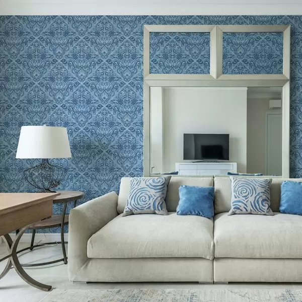 Behang Damast in koele blauwtinten, sterker contrast Nr. a00826v2