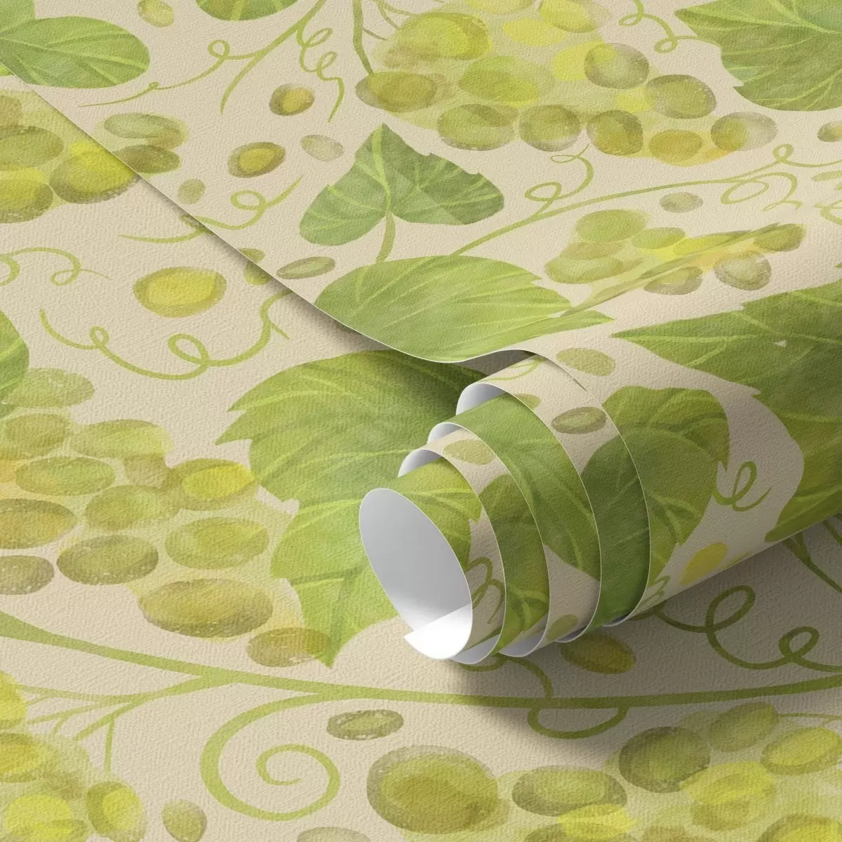 Behang Druiven en groene bladeren op een lichte achtergrond Nr. a00834