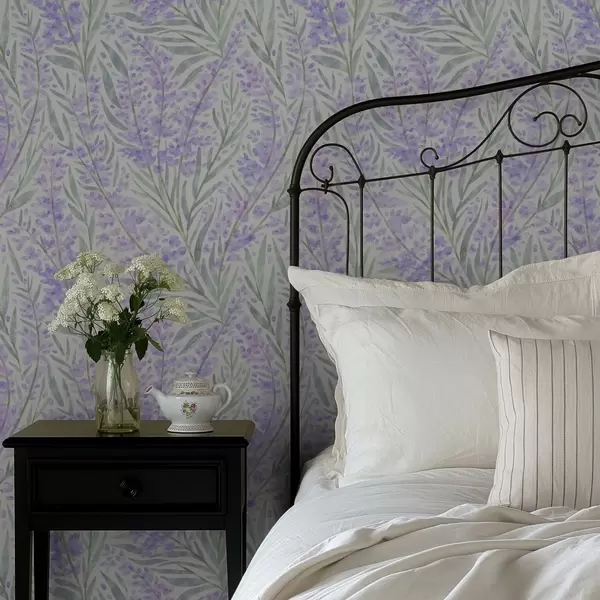 Behang Lavendel takken in paarse tinten op een lichte achtergrond Nr. a00835