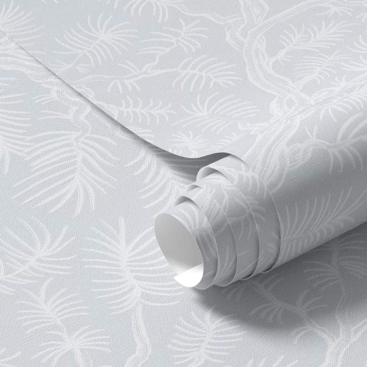 Behang Pijnboomtakken in lichte tinten op blauwe achtergrond Nr. a00838