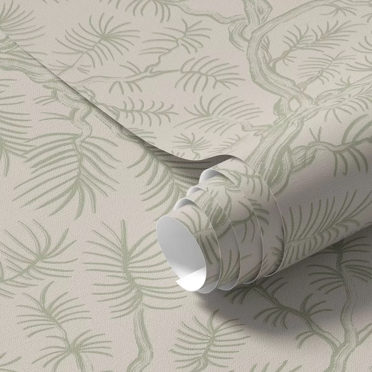 Behang Dennen takken in lichtgroene tinten op beige achtergrond Nr. a00838v1