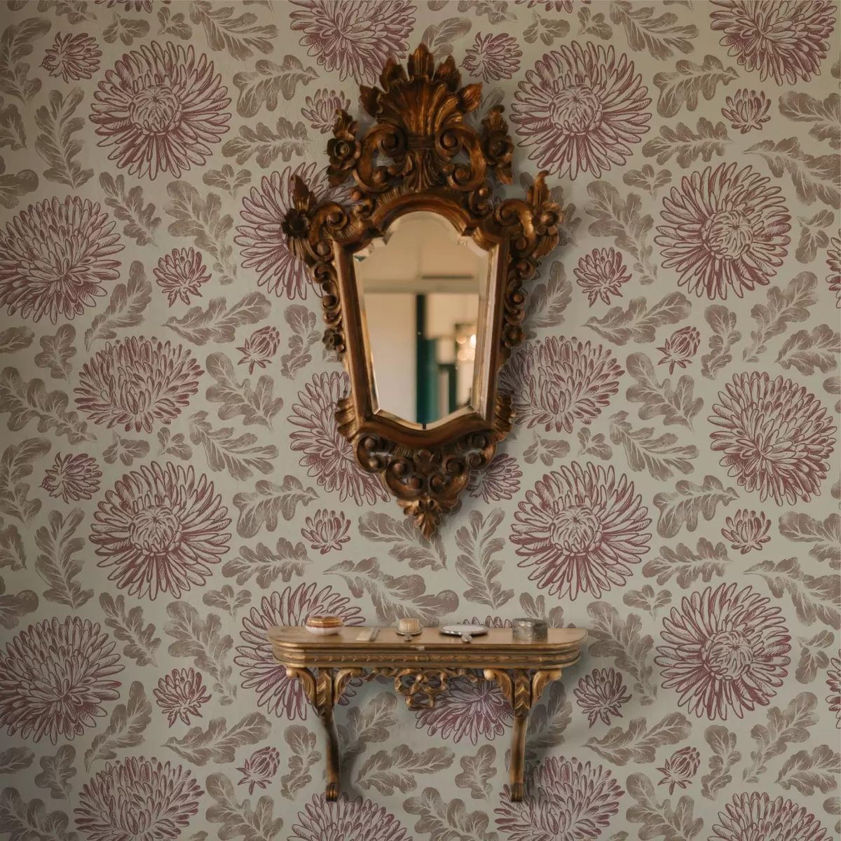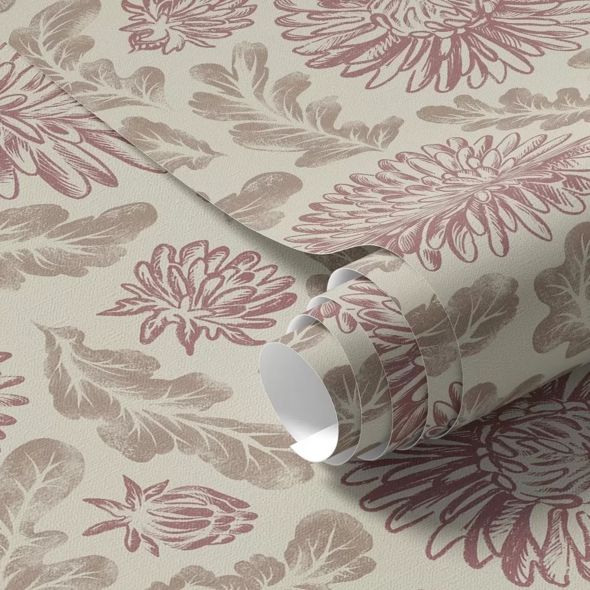 Behang Chrysanten met wijnaccenten op crème Nr. a00840v1