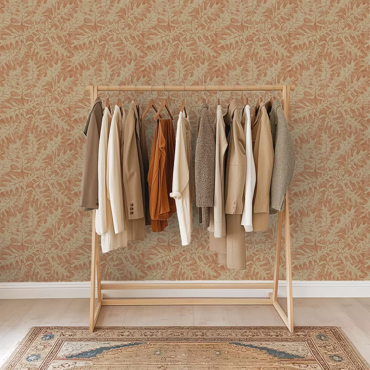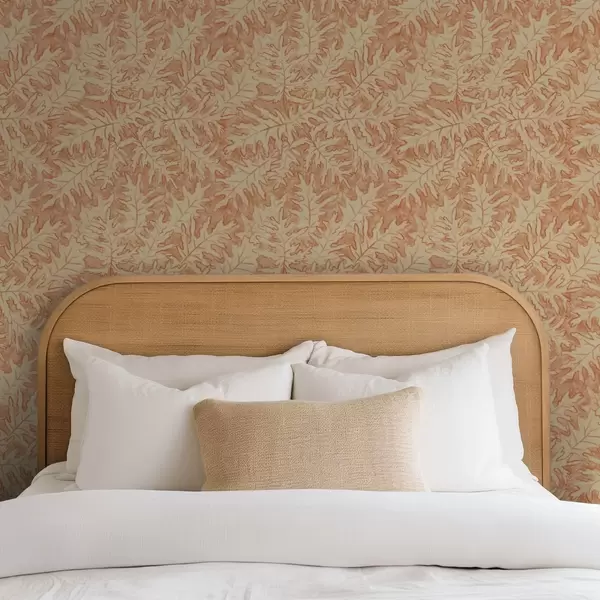 Behang Grote eikenbladeren in terracotta op crème Nr. a00846
