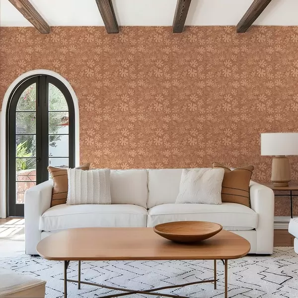 Behang Veldbladeren en grassen in een terracotta-beige kleurenpalet Nr. a00847
