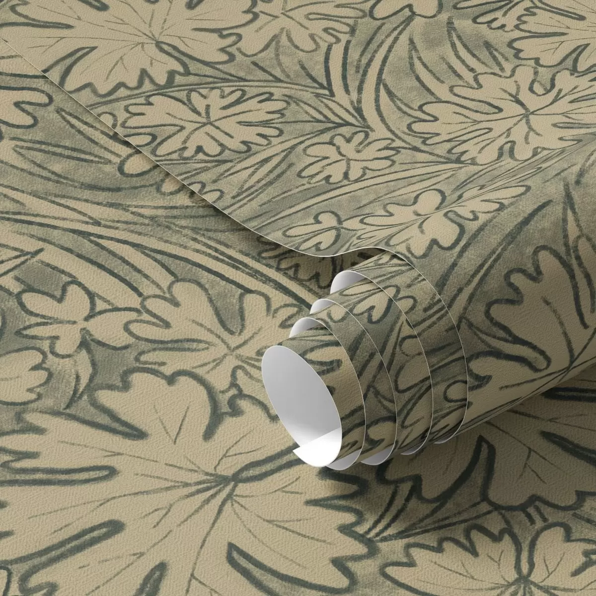 Behang Veldbladeren en grassen in grijs-olijfkleurige tinten Nr. a00847v1
