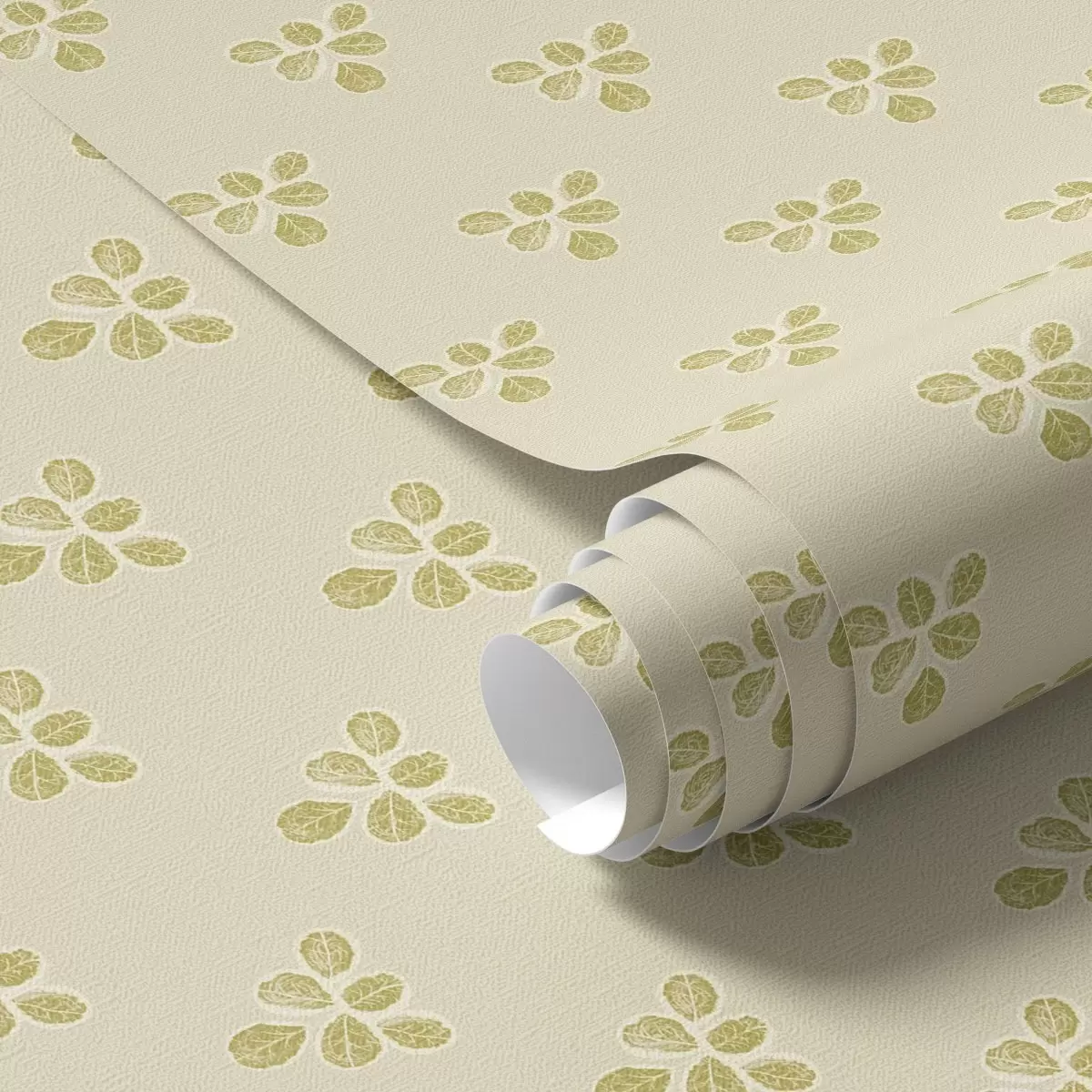 Behang Kleine herhaling: trio's van bladeren op crème-beige Nr. a00848
