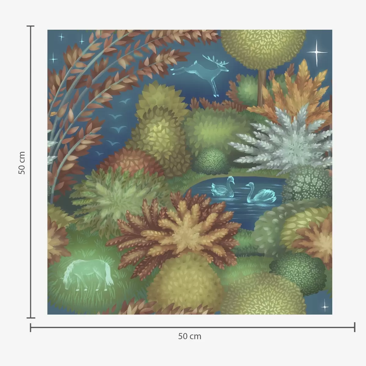 Behang Sprookjesachtige nachtelijke tuin met een meer en gloeiende dieren Nr. a00851