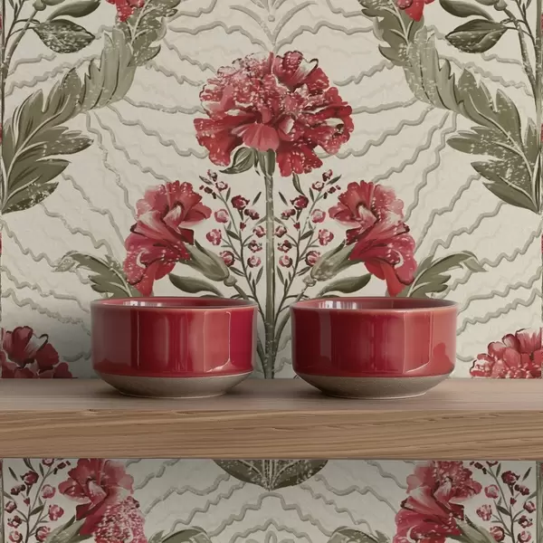Behang Grote rode pioenrozen met grafische achtergrond, crèmekleurige achtergrond Nr. a00857