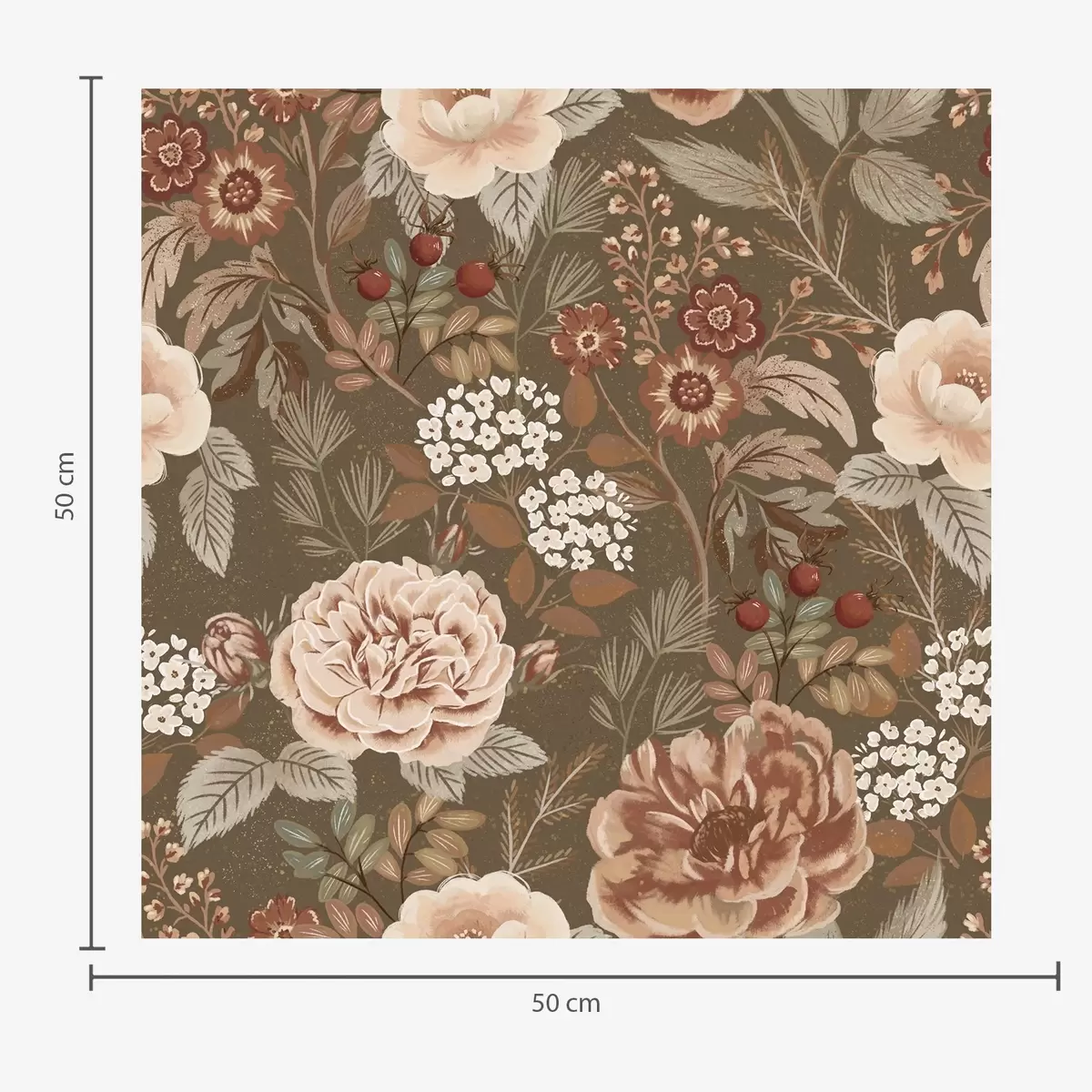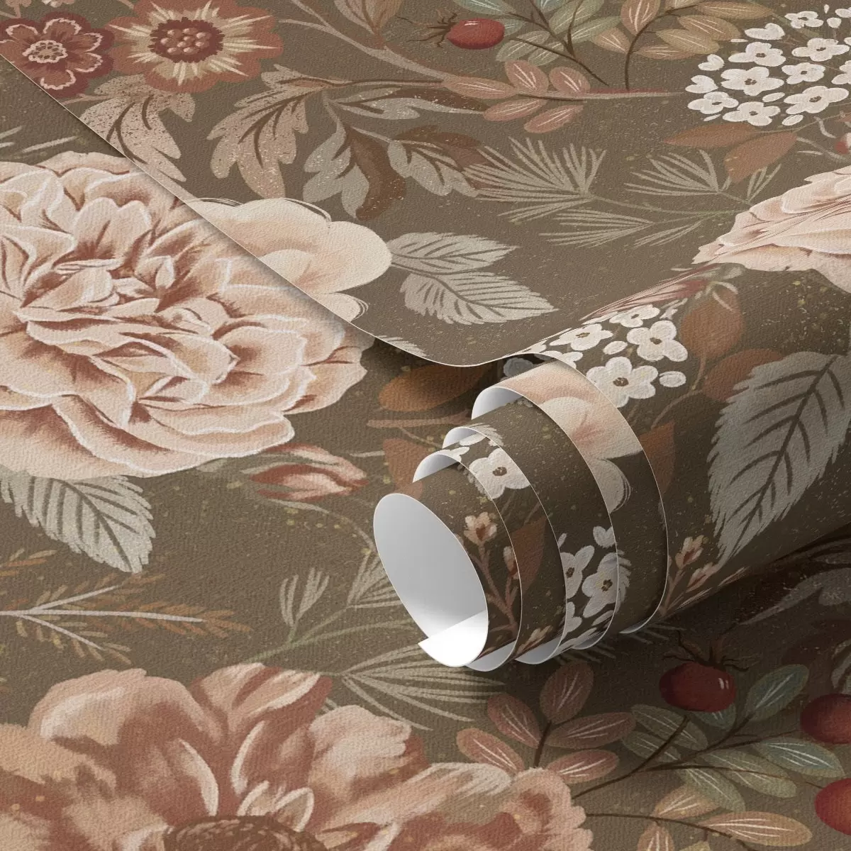 Behang Warme rozen en bessen op een bruine achtergrond Nr. a00868