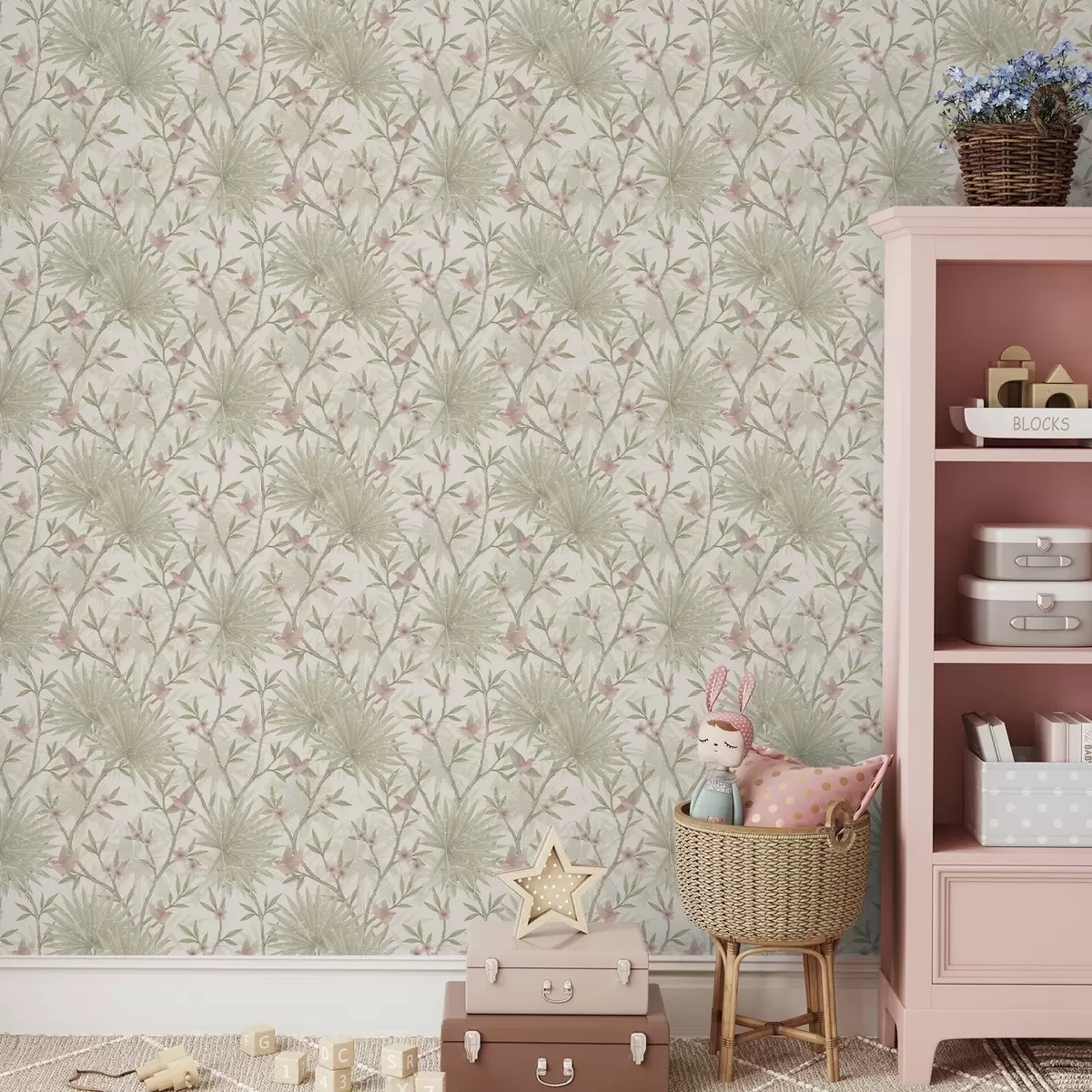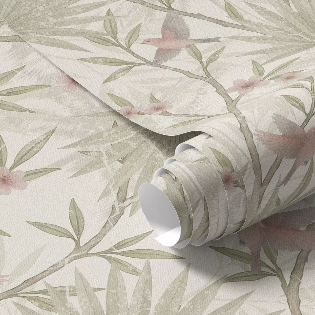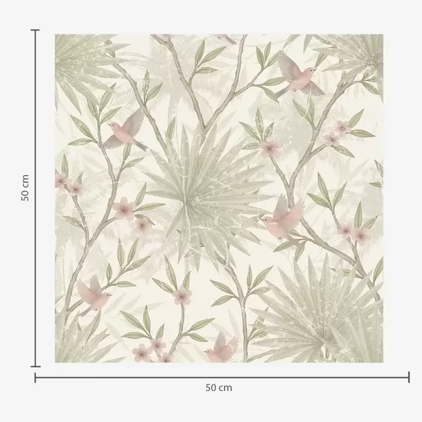 Behang Delicate roze vogels tussen palmbladeren Nr. a00883