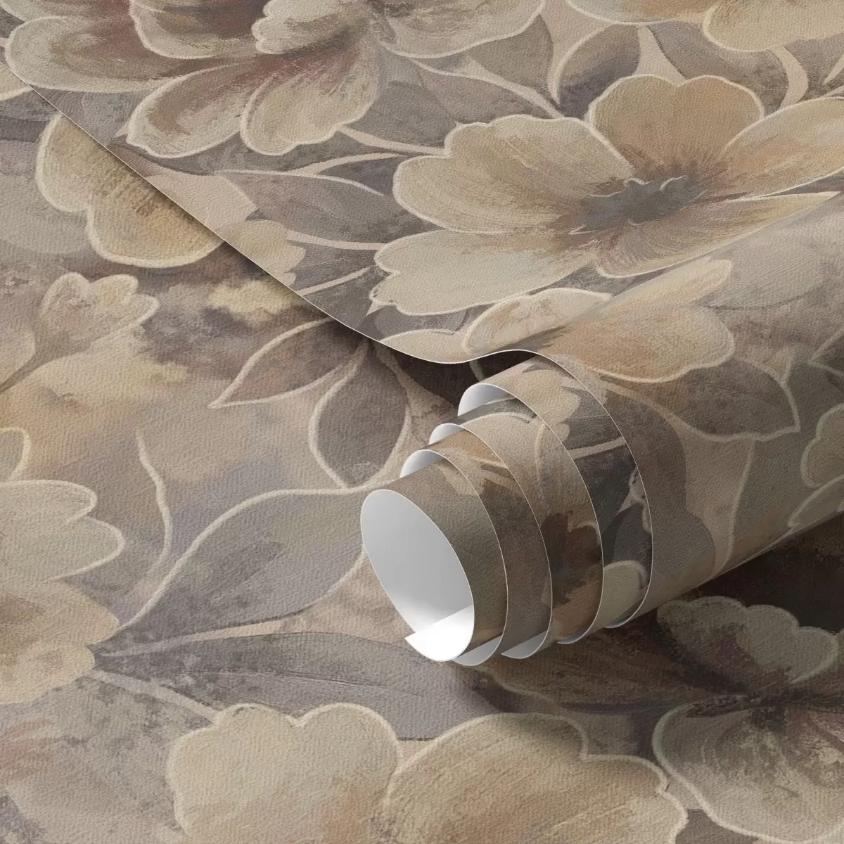 Behang Schilderachtige beige bloemen op een rokerige abstracte achtergrond Nr. a00884