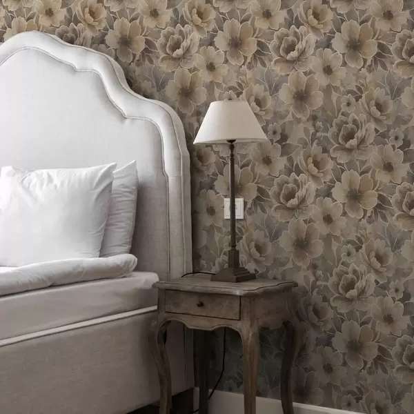 Behang Schilderachtige beige bloemen op een rokerige abstracte achtergrond Nr. a00884