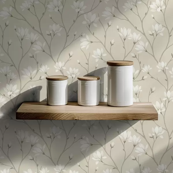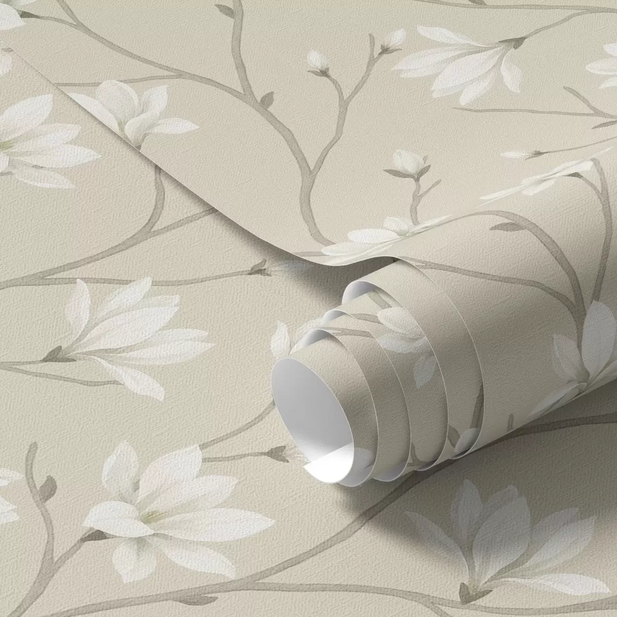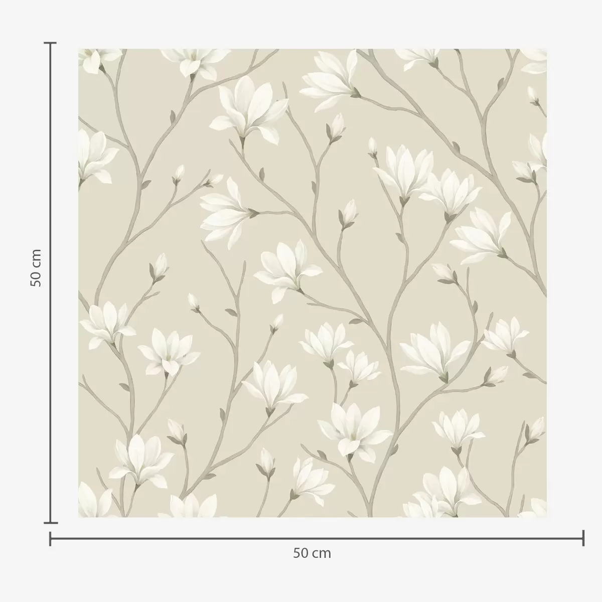 Behang Lichte magnolia's op slanke beige takken Nr. a00890
