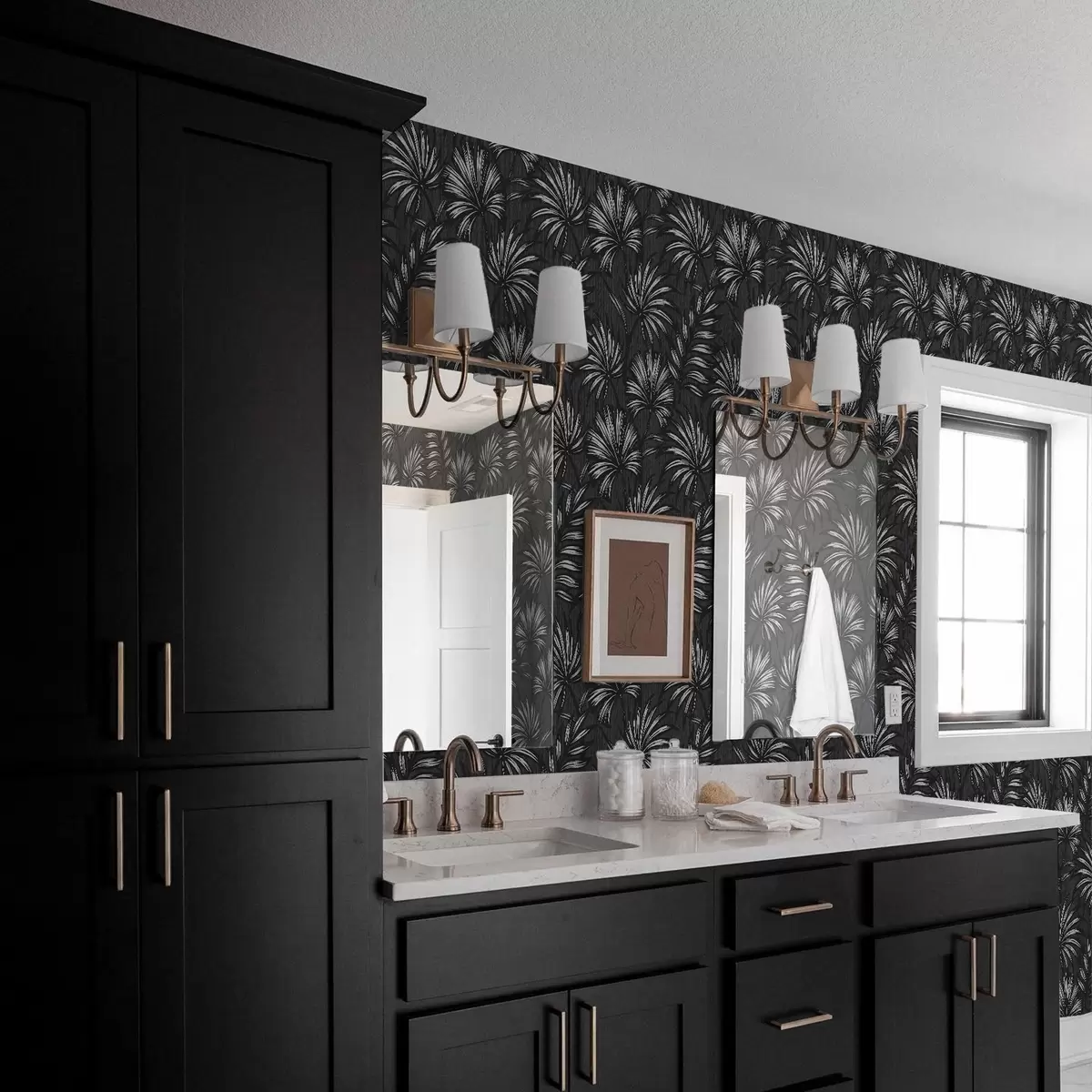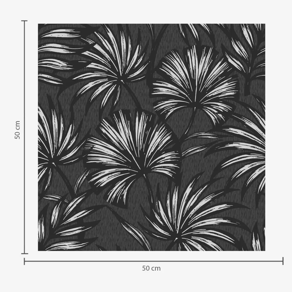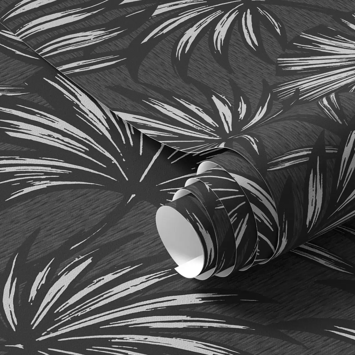 Behang Zwart-witte palmbladeren op een donkere achtergrond Nr. a00891