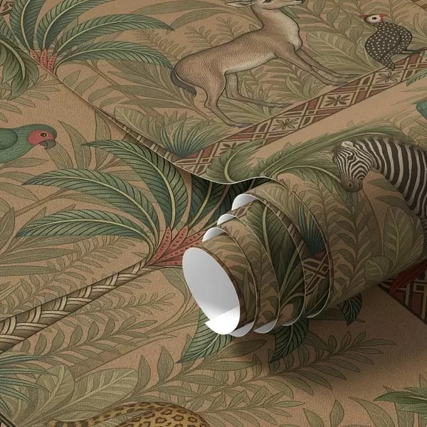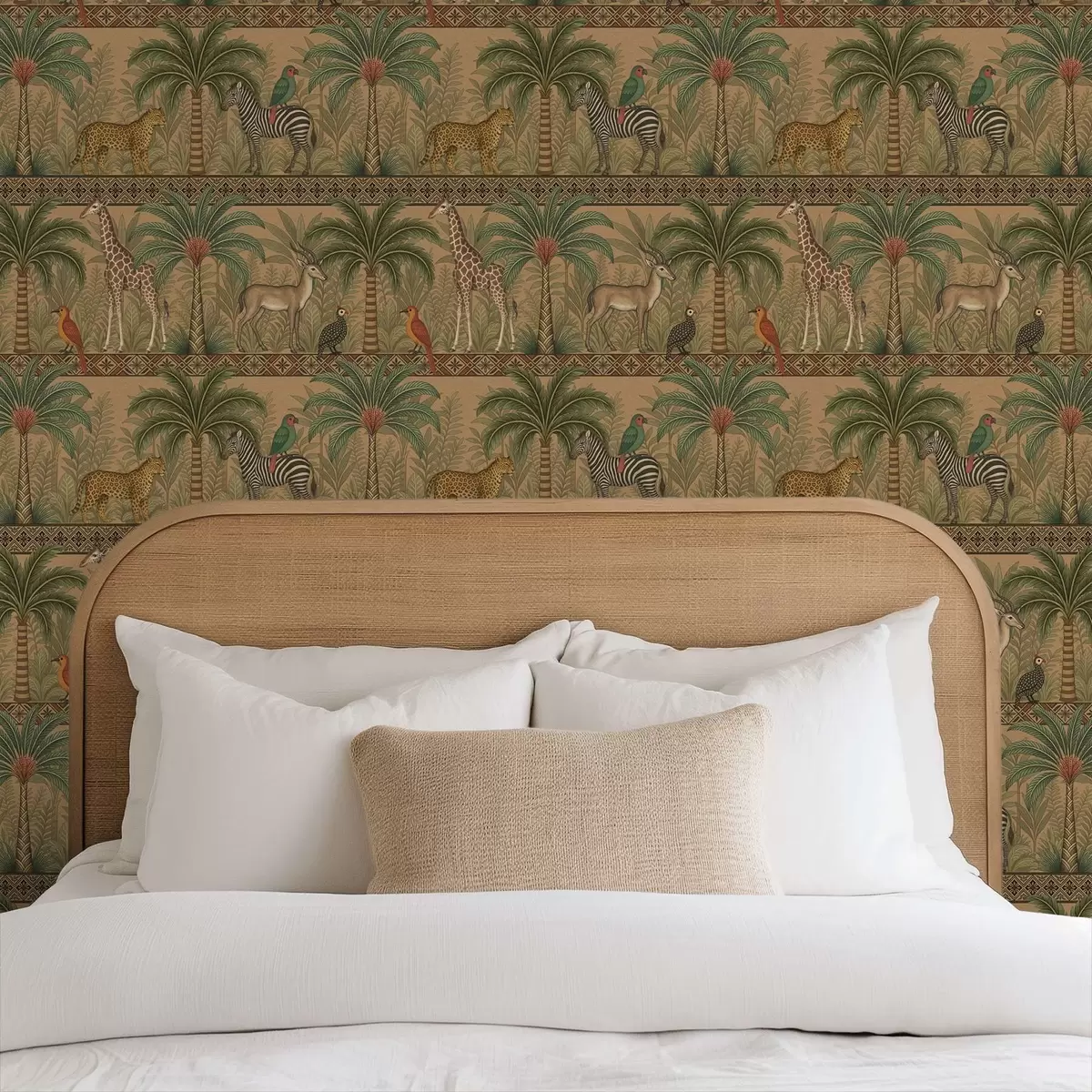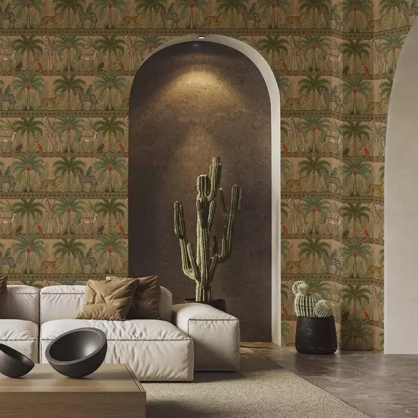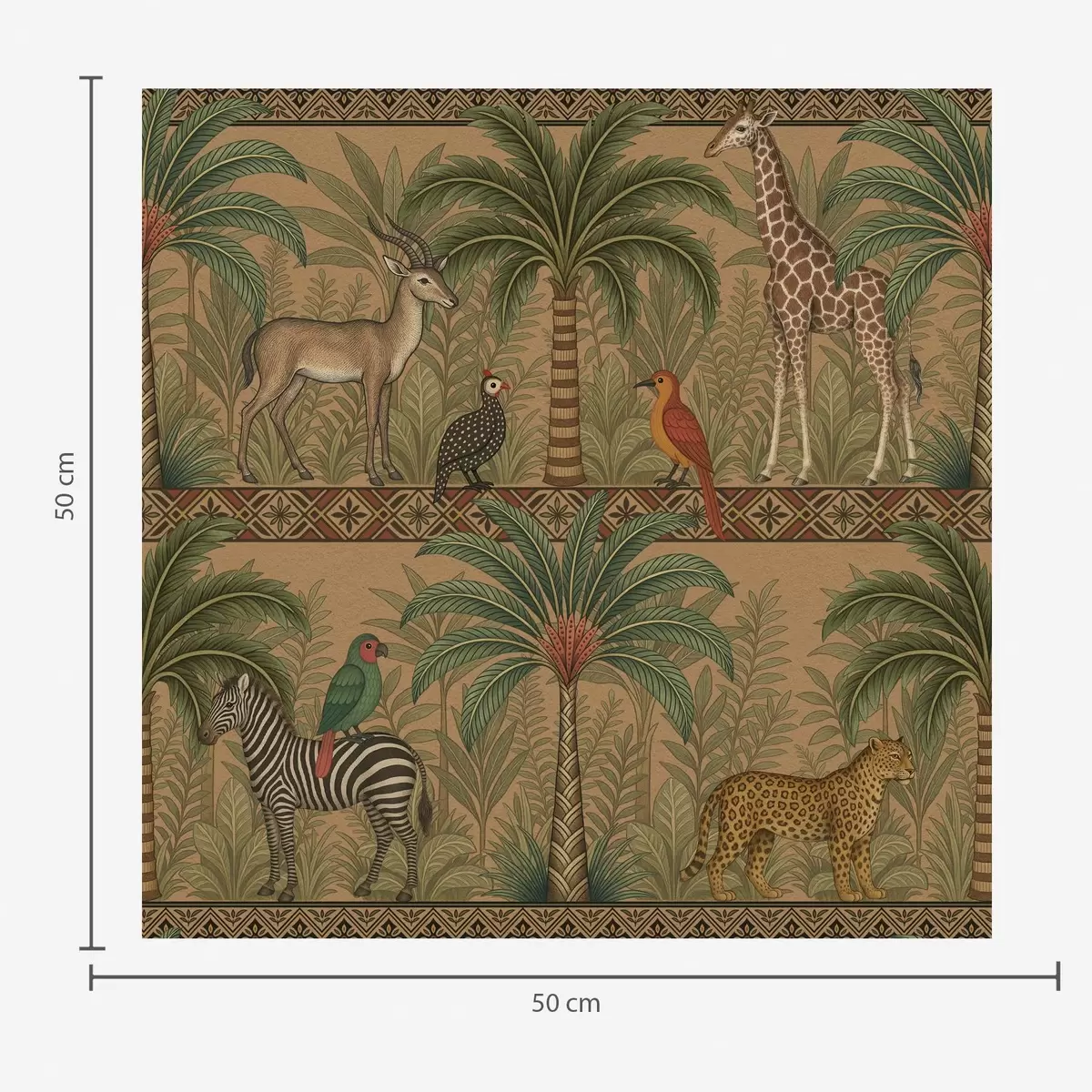 Behang Decoratieve savannedieren tussen palmen en borders Nr. a00898