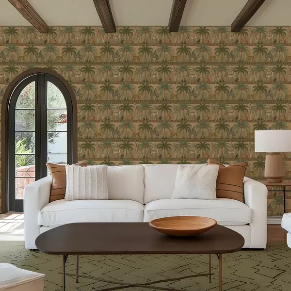 Behang Decoratieve savannedieren tussen palmen en borders Nr. a00898