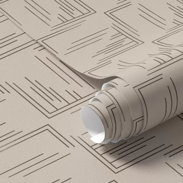 Behang Grote hoekige vierkanten met verschillende lijnvullingen, zandkleurig Nr. a00913