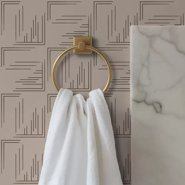 Behang Grote hoekige vierkanten met verschillende lijnvullingen, zandkleurig Nr. a00913