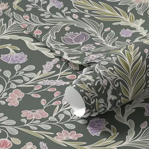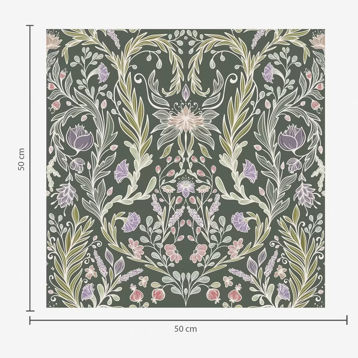 Behang Symmetrisch bloemenornament op een donkergroene achtergrond Nr. a00928