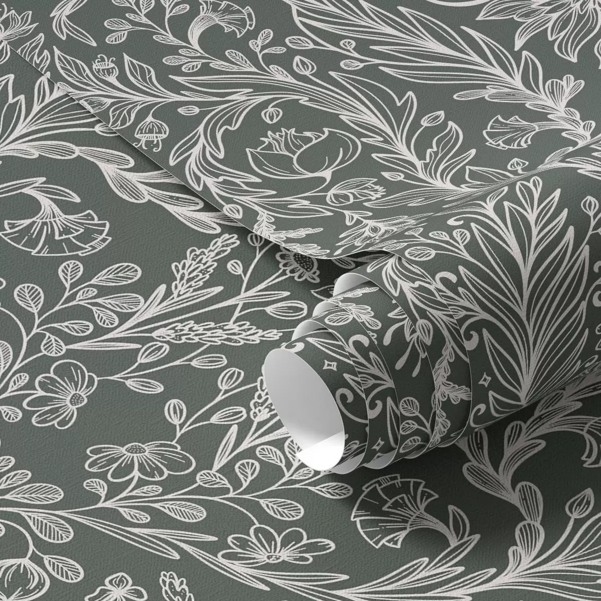 Behang Lineair bloemenpatroon op een donkergroene achtergrond Nr. a00929