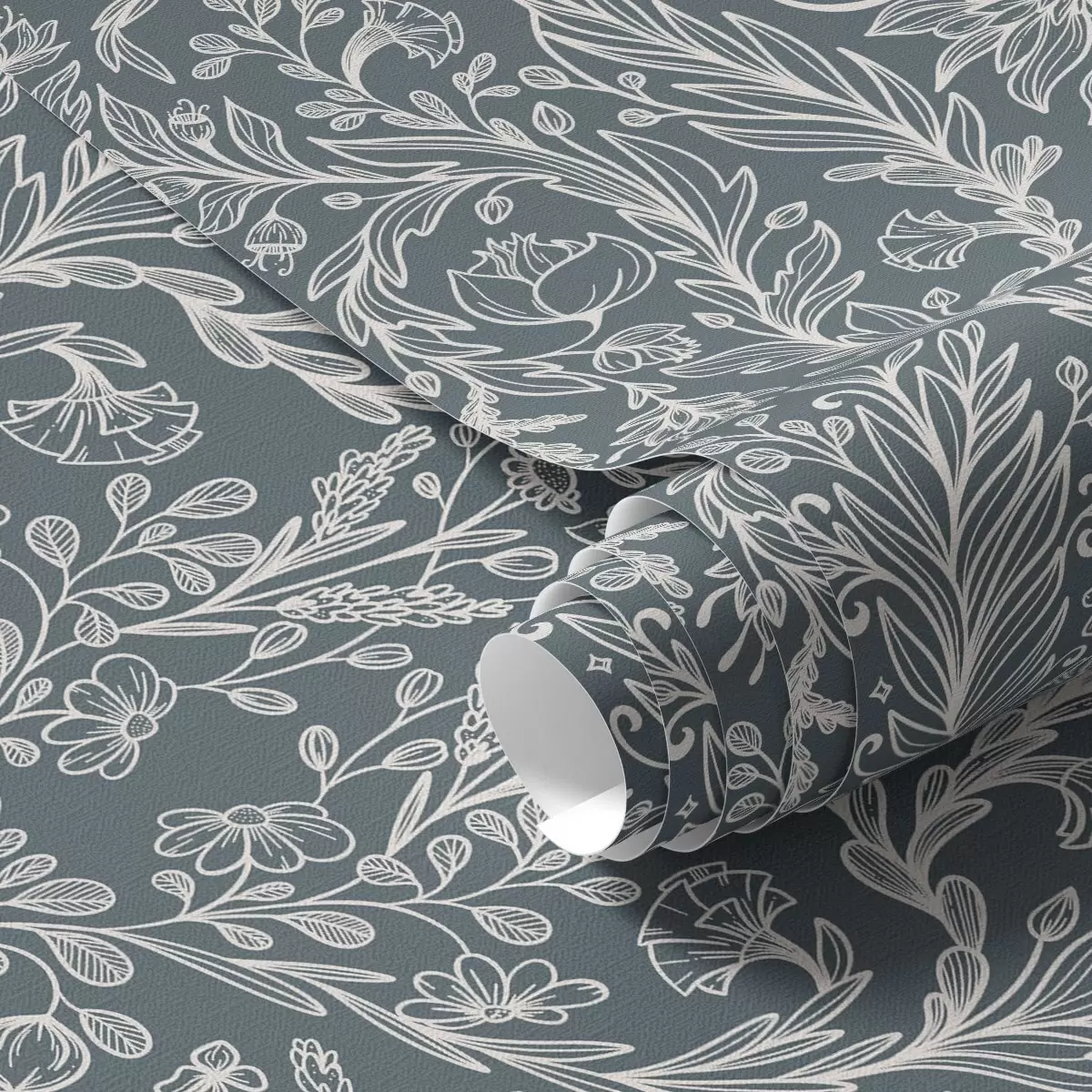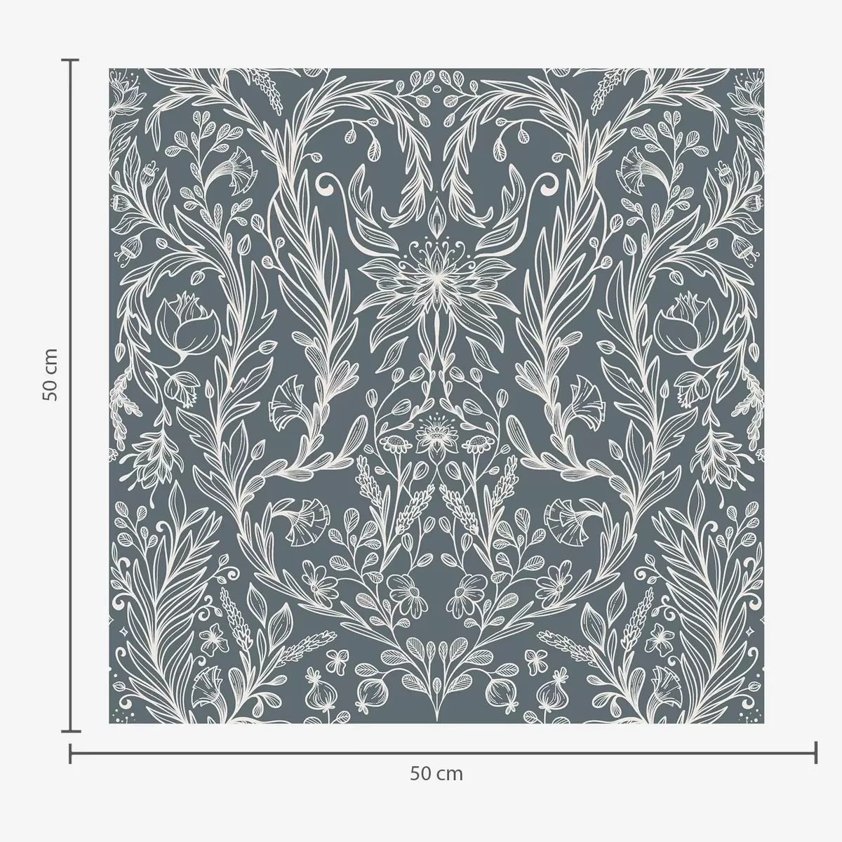 Behang Lineair bloemenornament op een blauwgrijze achtergrond Nr. a00929v1