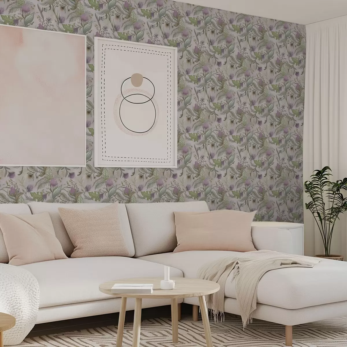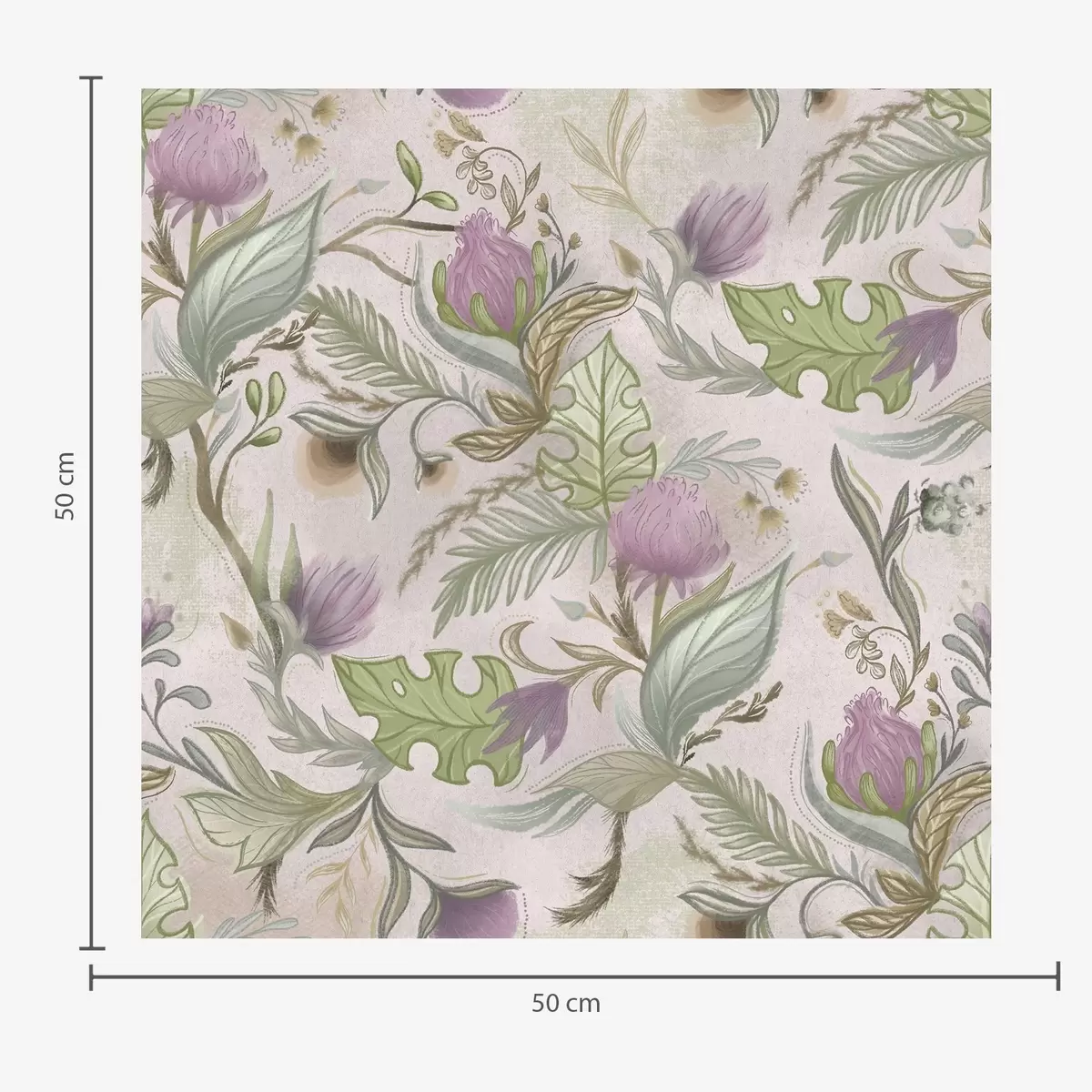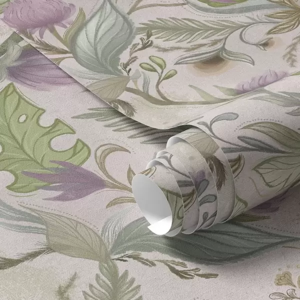 Behang Lila wilde bloemen en bladeren op een poederachtige achtergrond Nr. a00930v3