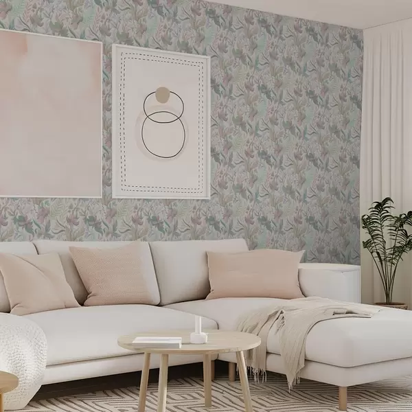 Behang Delicate pastelkleurige bloemen en bladeren op een lichte achtergrond Nr. a00931