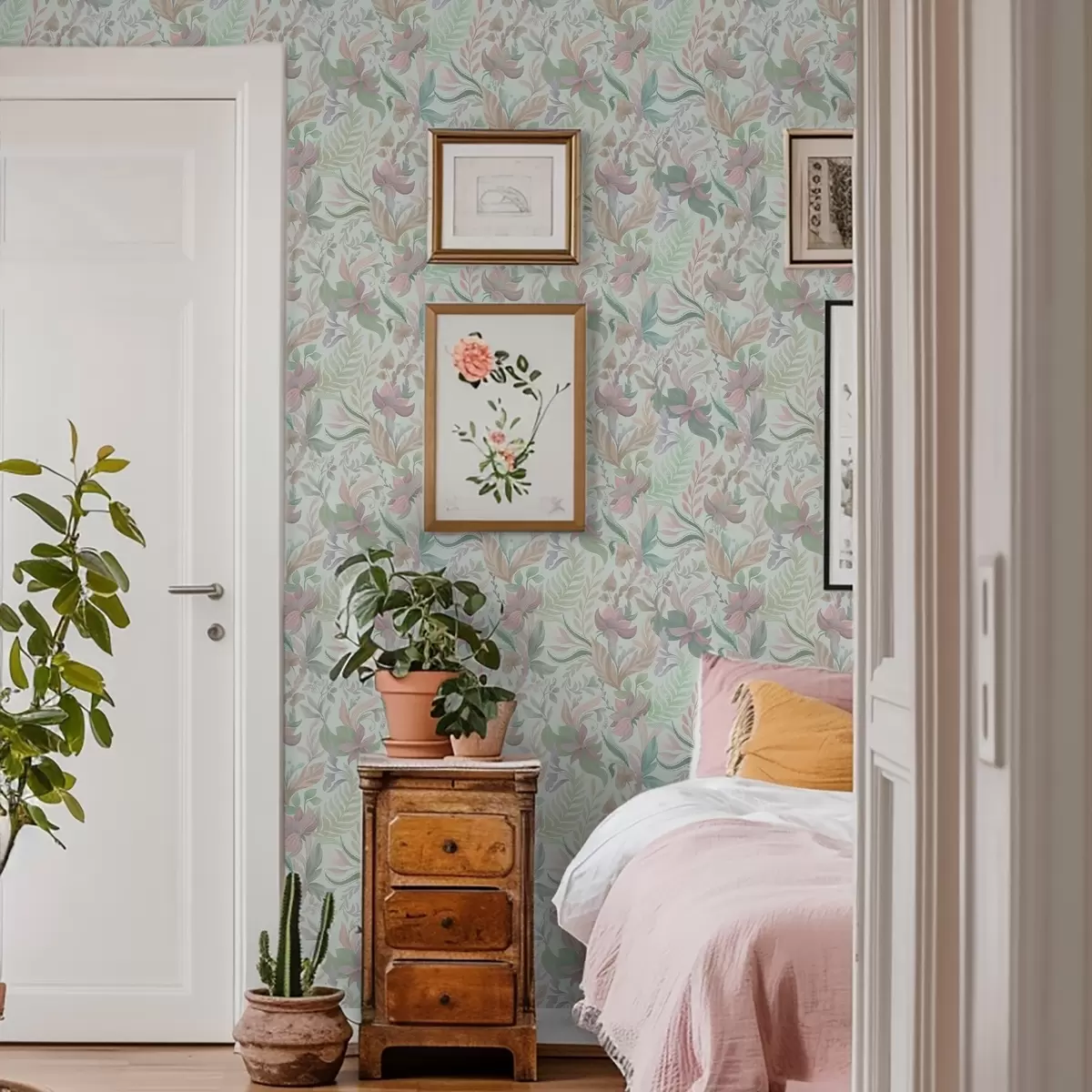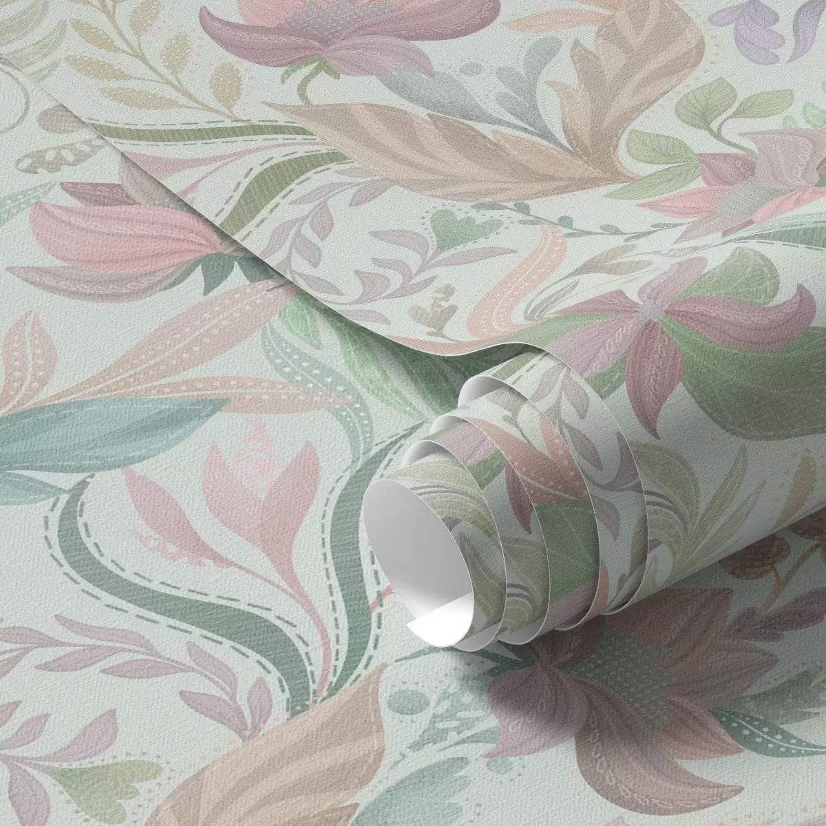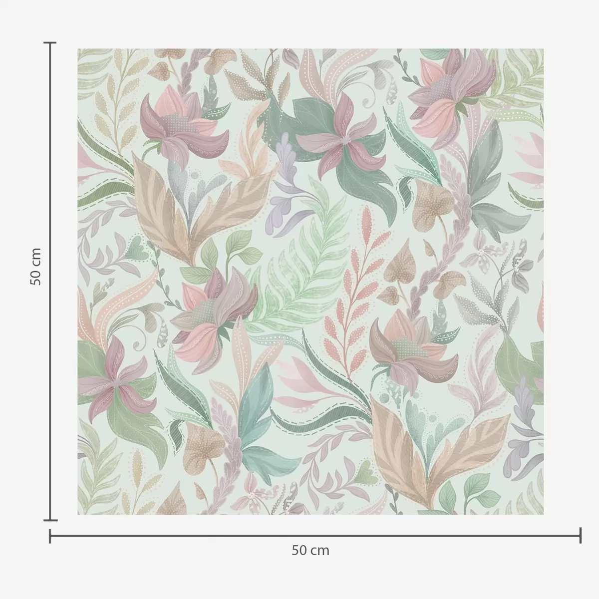 Behang Pastelkleurige bloemenpatronen op een zachte mintkleurige achtergrond Nr. a00931v1
