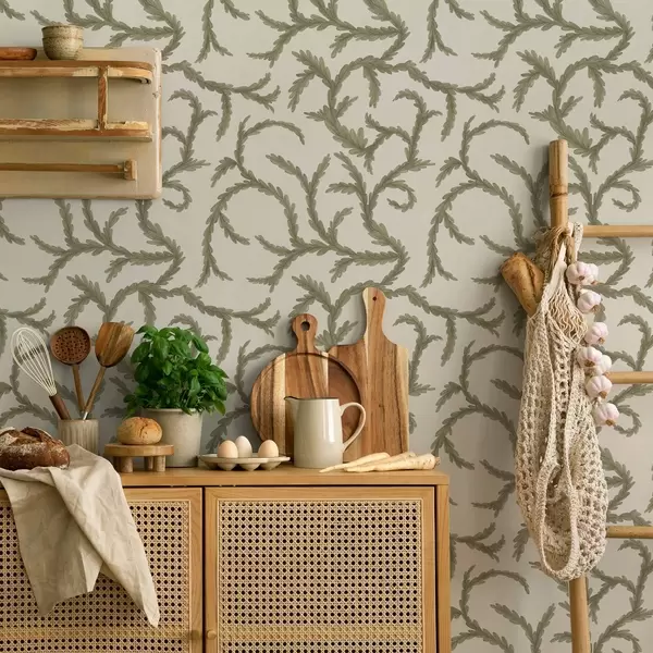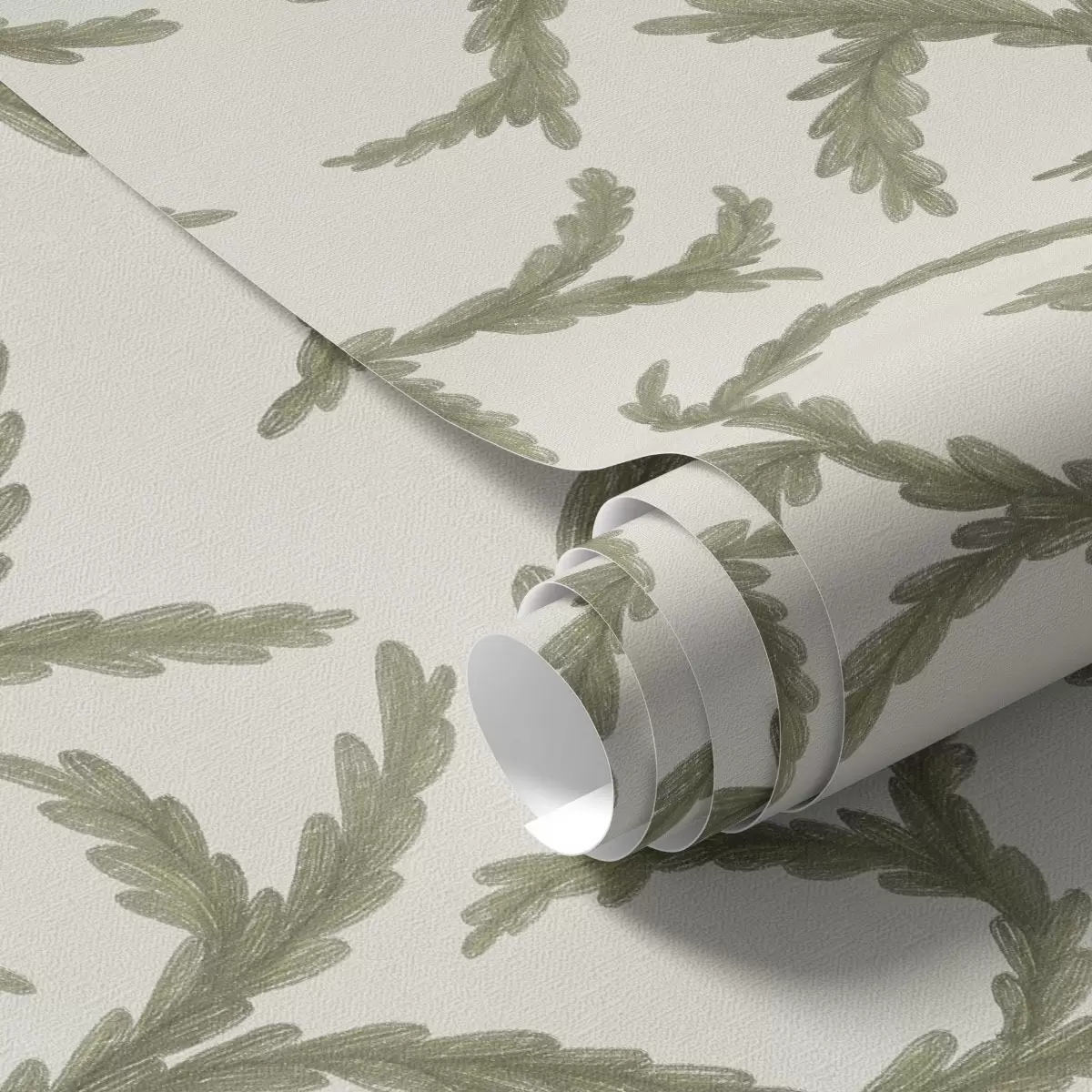 Behang Zachte groene naaldboomkrullen op een lichte achtergrond Nr. a00938