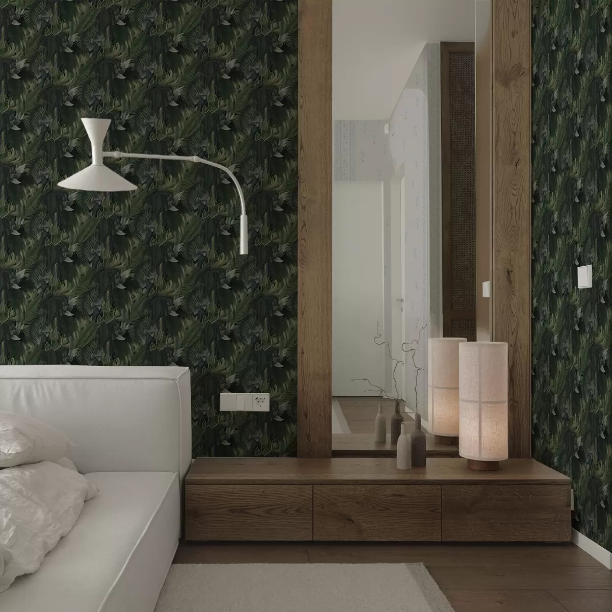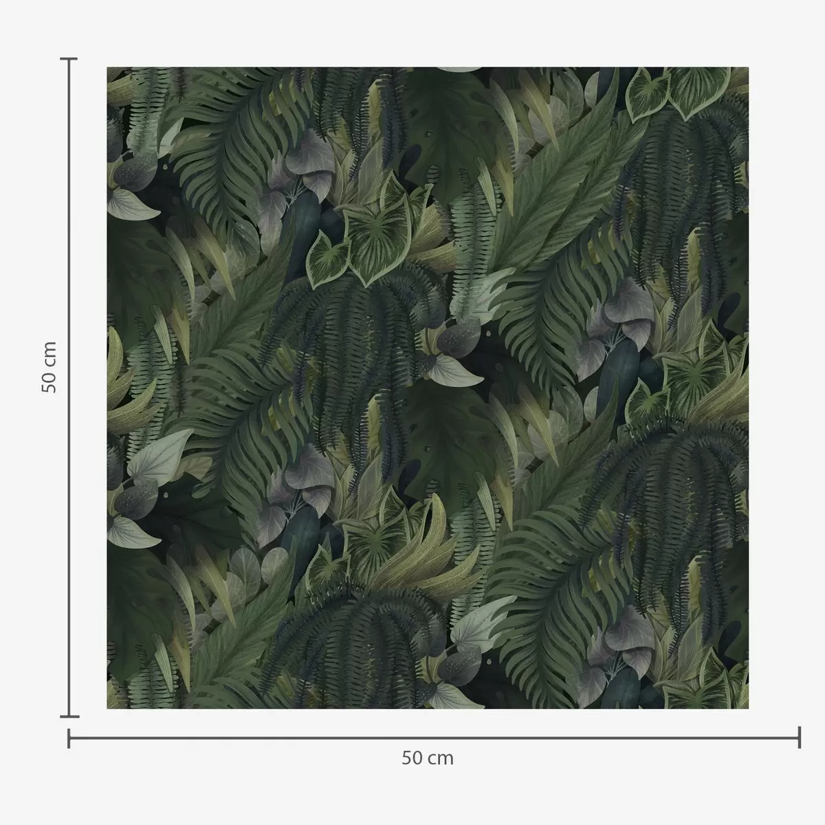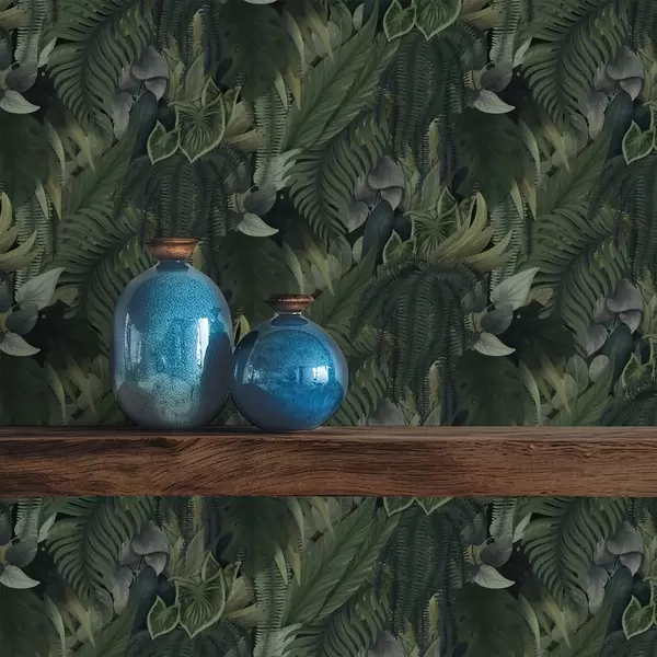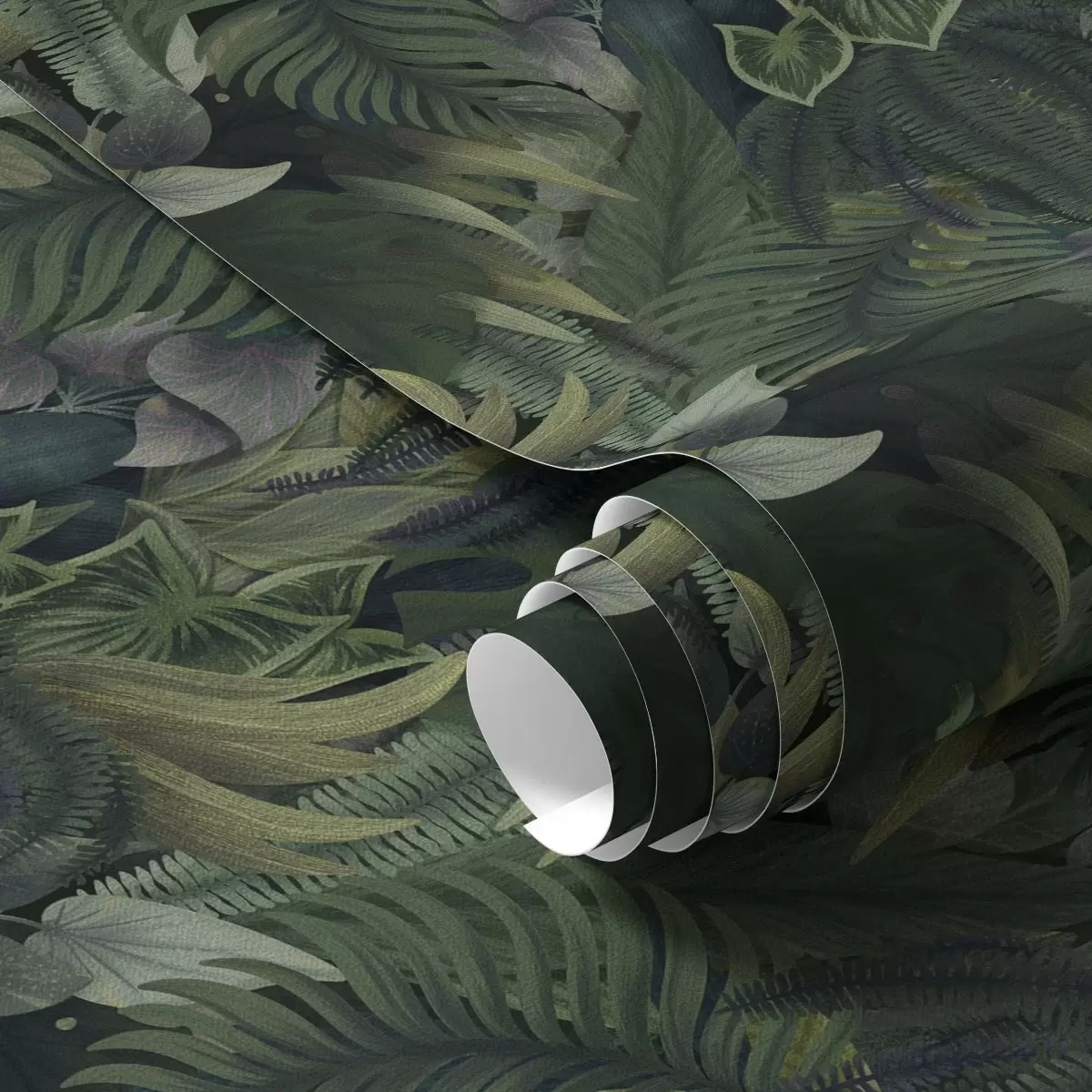 Behang Dicht tropisch gebladerte in diepgroene struikgewas Nr. a00943