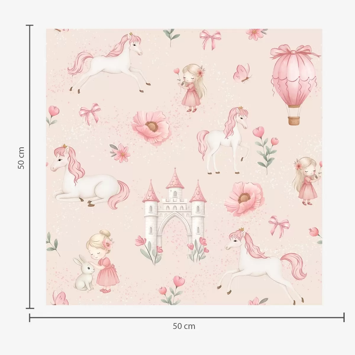 Behang Roze eenhoorns, kleine meisjes en een kasteel op een zachte achtergrond Nr. a00957