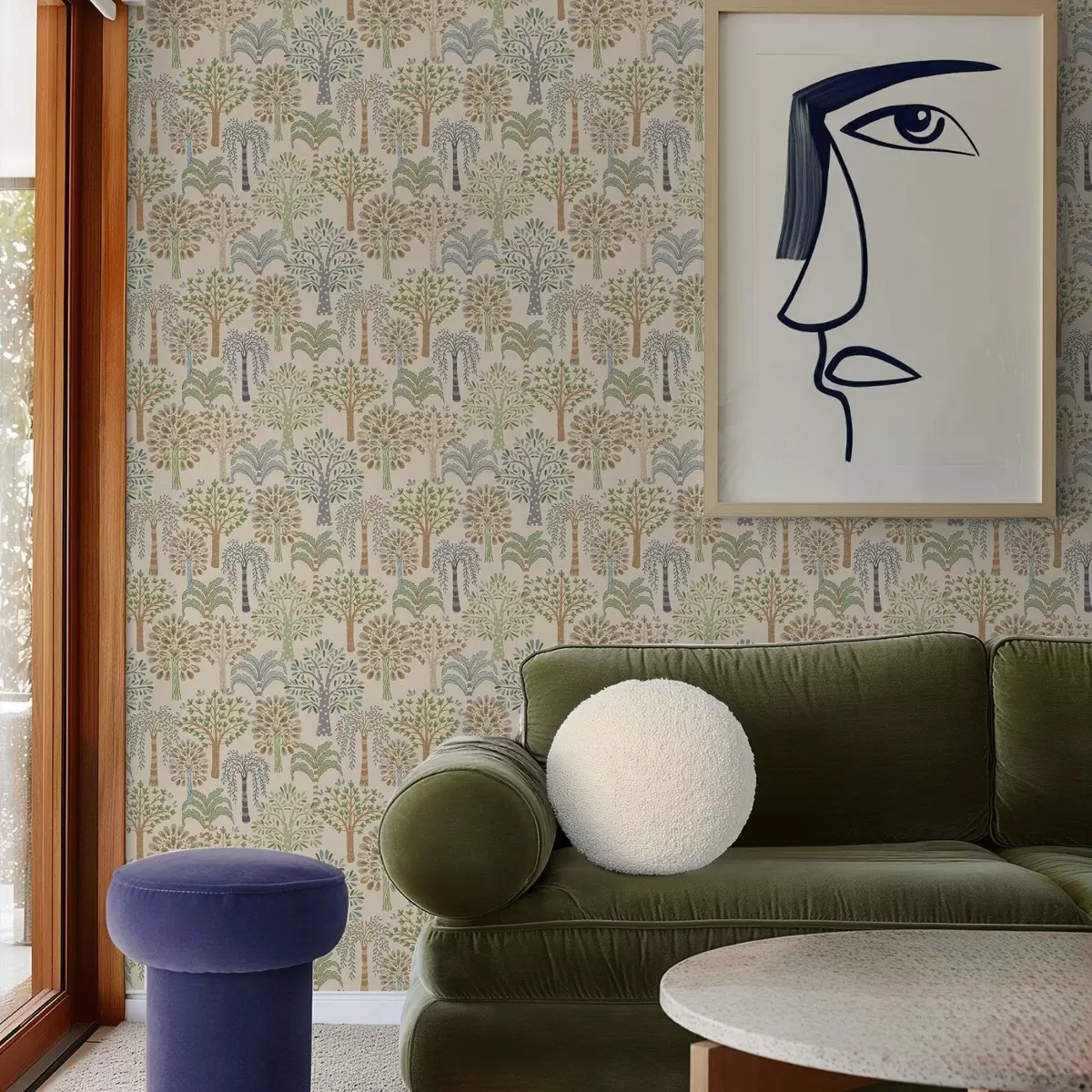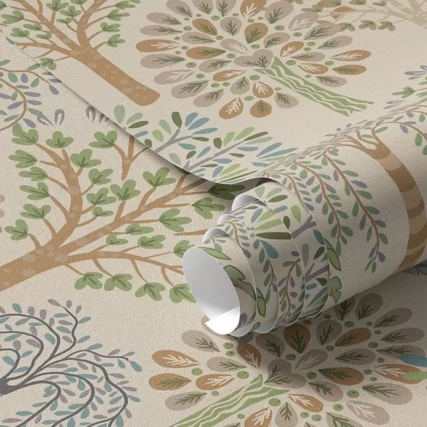Behang Sierbomen in een zacht, natuurlijk kleurenpalet Nr. a00960