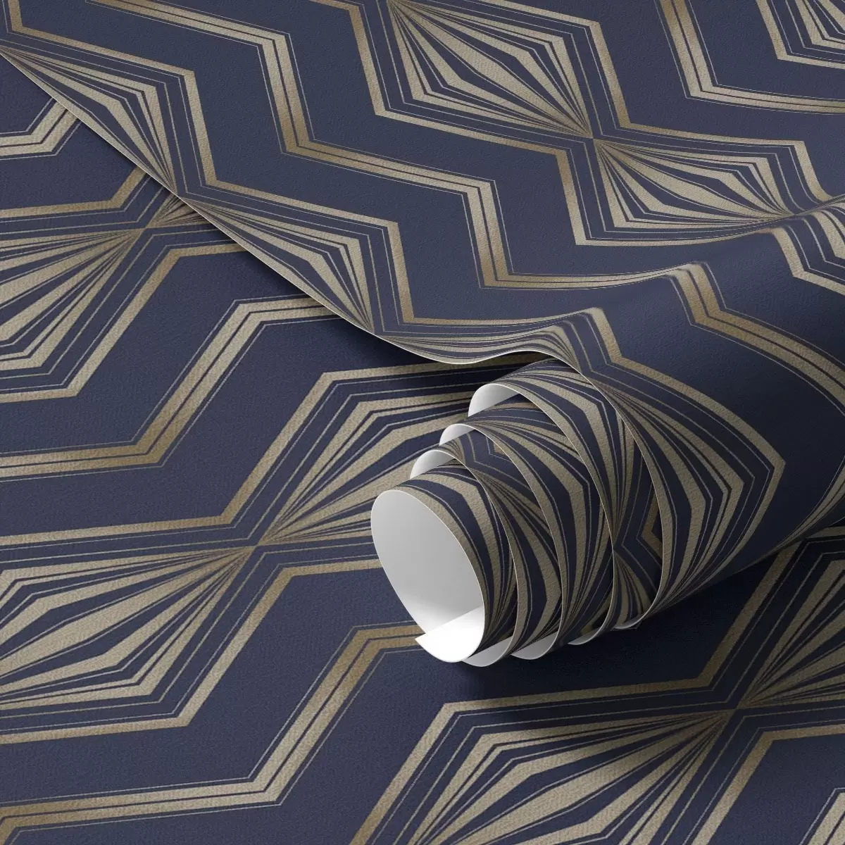 Behang Donkerblauw geometrisch patroon met ruitjes Nr. a00973