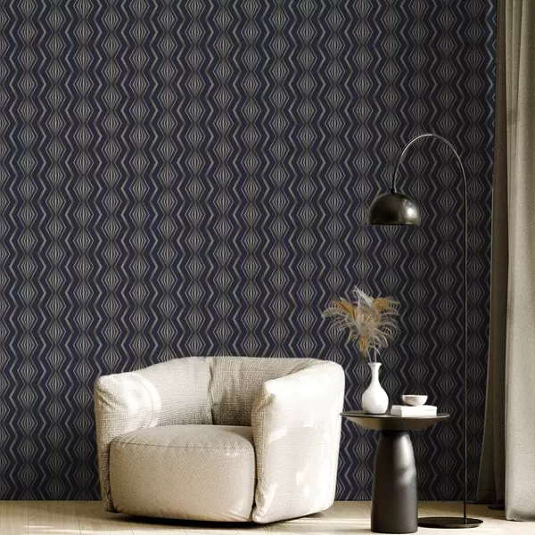 Behang Donkerblauw geometrisch patroon met ruitjes Nr. a00973