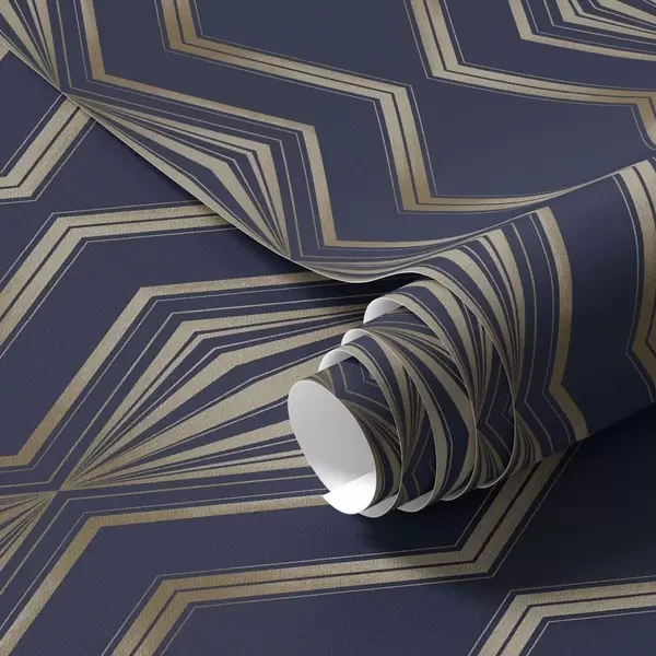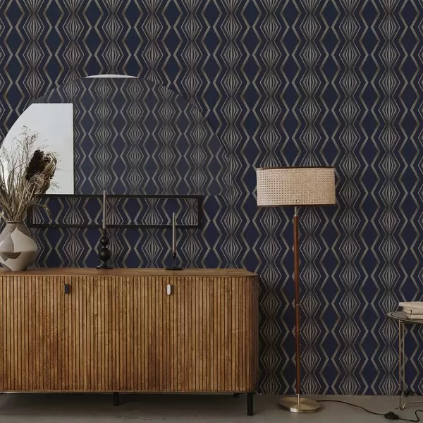 Behang Donkerblauwe achtergrond met geometrische ruiten en zigzaglijnen Nr. a00974v2