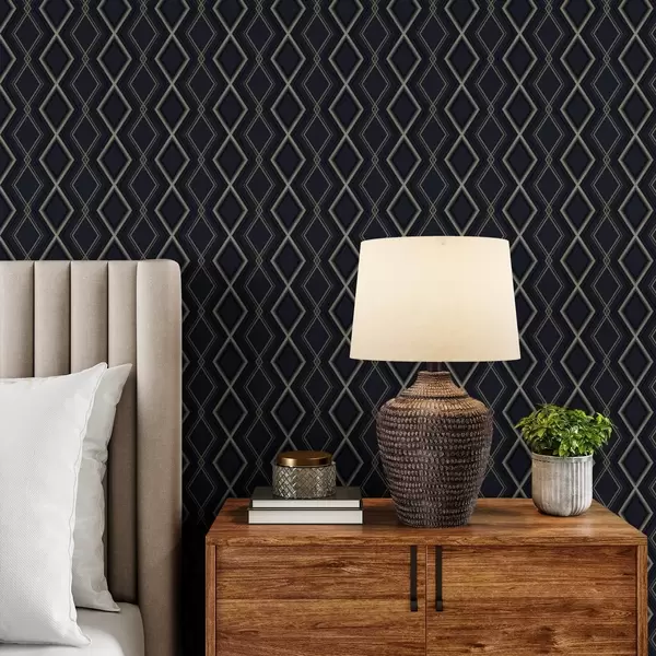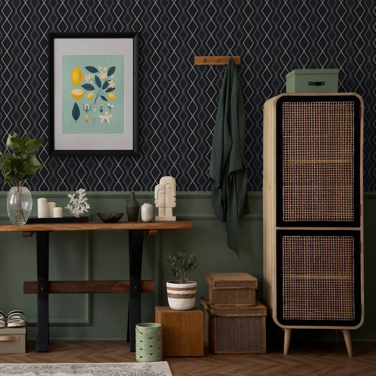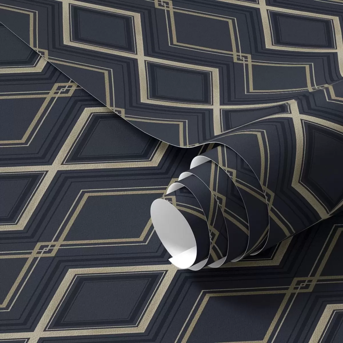 Behang Donkerblauw ruitpatroon met dunne lichte lijnen Nr. a00975