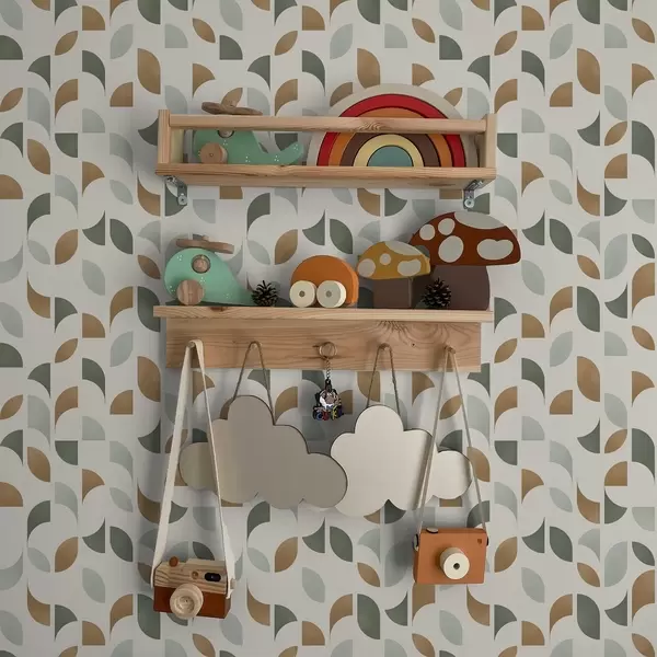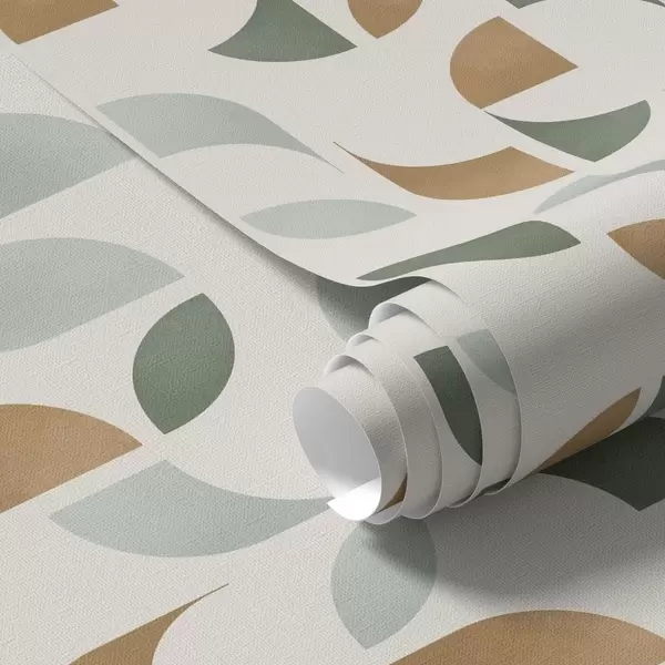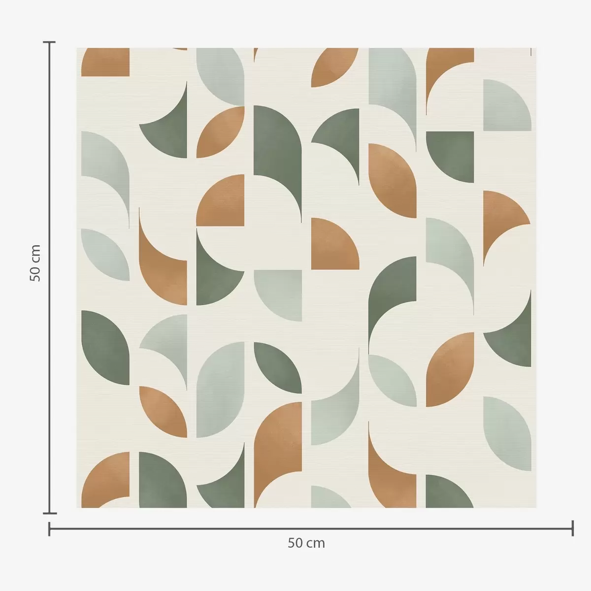 Behang Abstracte halve cirkels en bladeren in groen en terracotta Nr. a00985