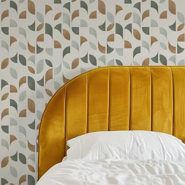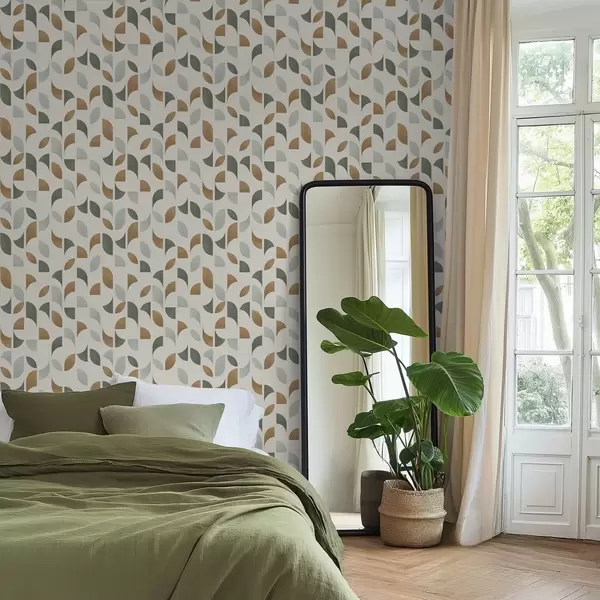 Behang Abstracte halve cirkels en bladeren in groen en terracotta Nr. a00985