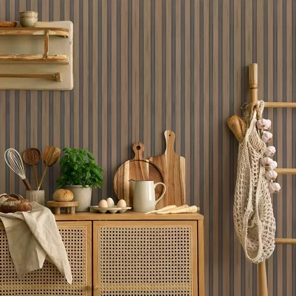 Behang Verticale houten lamellen met donkergrijze inzetstukken Nr. a00991