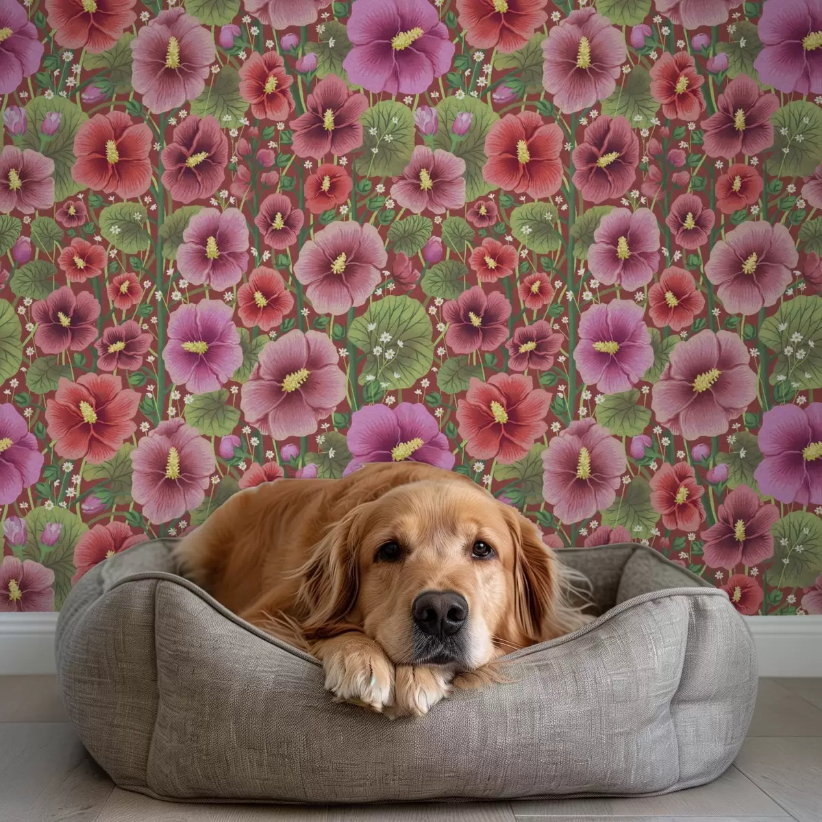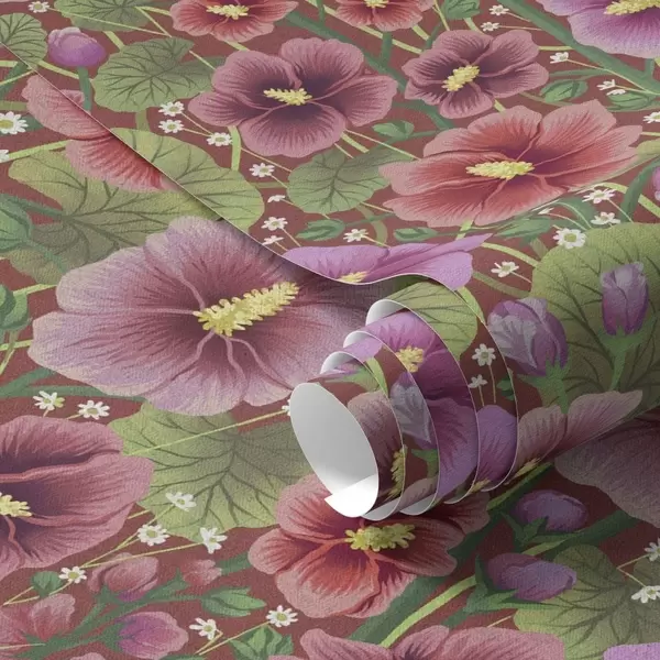 Behang Bloeiende hibiscus op een warme bruinrode achtergrond Nr. a00993v1
