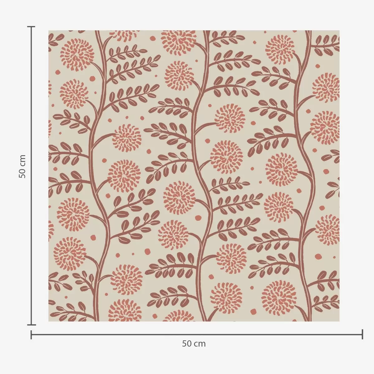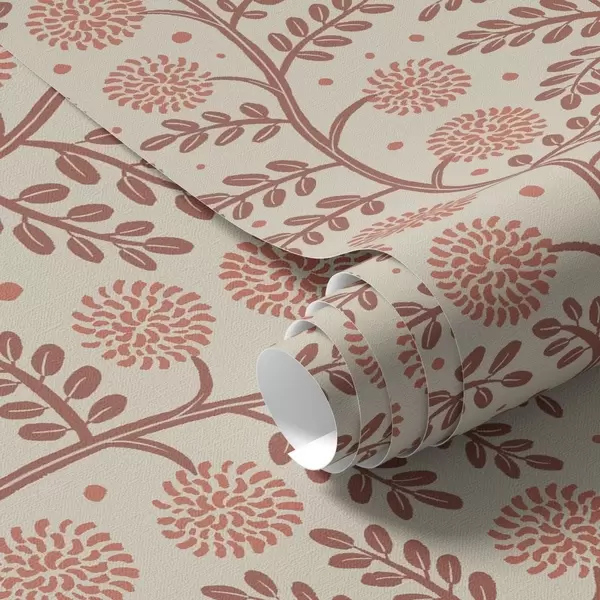 Behang Terracotta stelen met koraalkleurige pluizige bloemen op een crèmekleurige achtergrond Nr. a00997v1