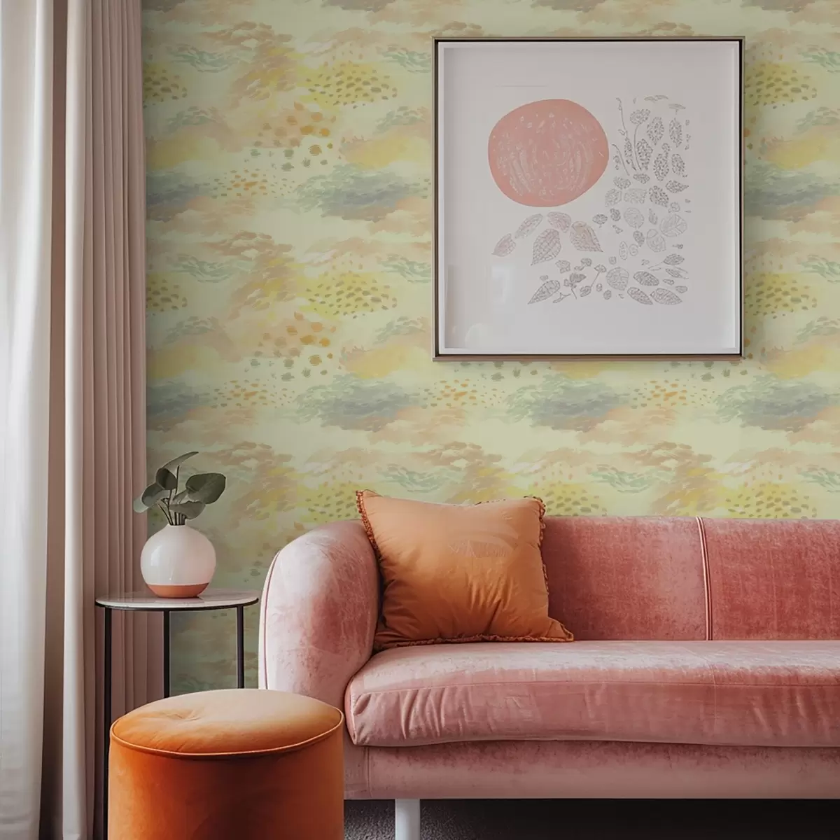 Behang Pastelachtige penseelstreken in een warm, romig geel palet Nr. a00999v1