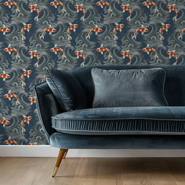 Behang Koi-vissen zwemmen tussen dramatische oceaangolven Nr. a01019