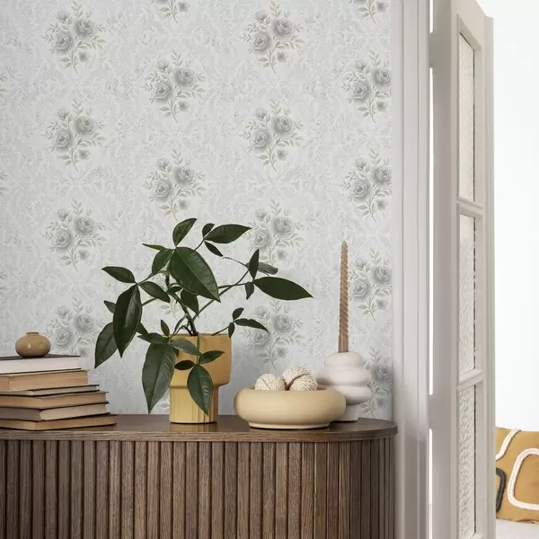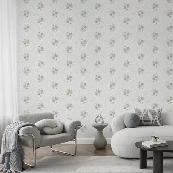 Behang Licht damastpatroon met grijze rozen in zachte ruitjes Nr. a01024