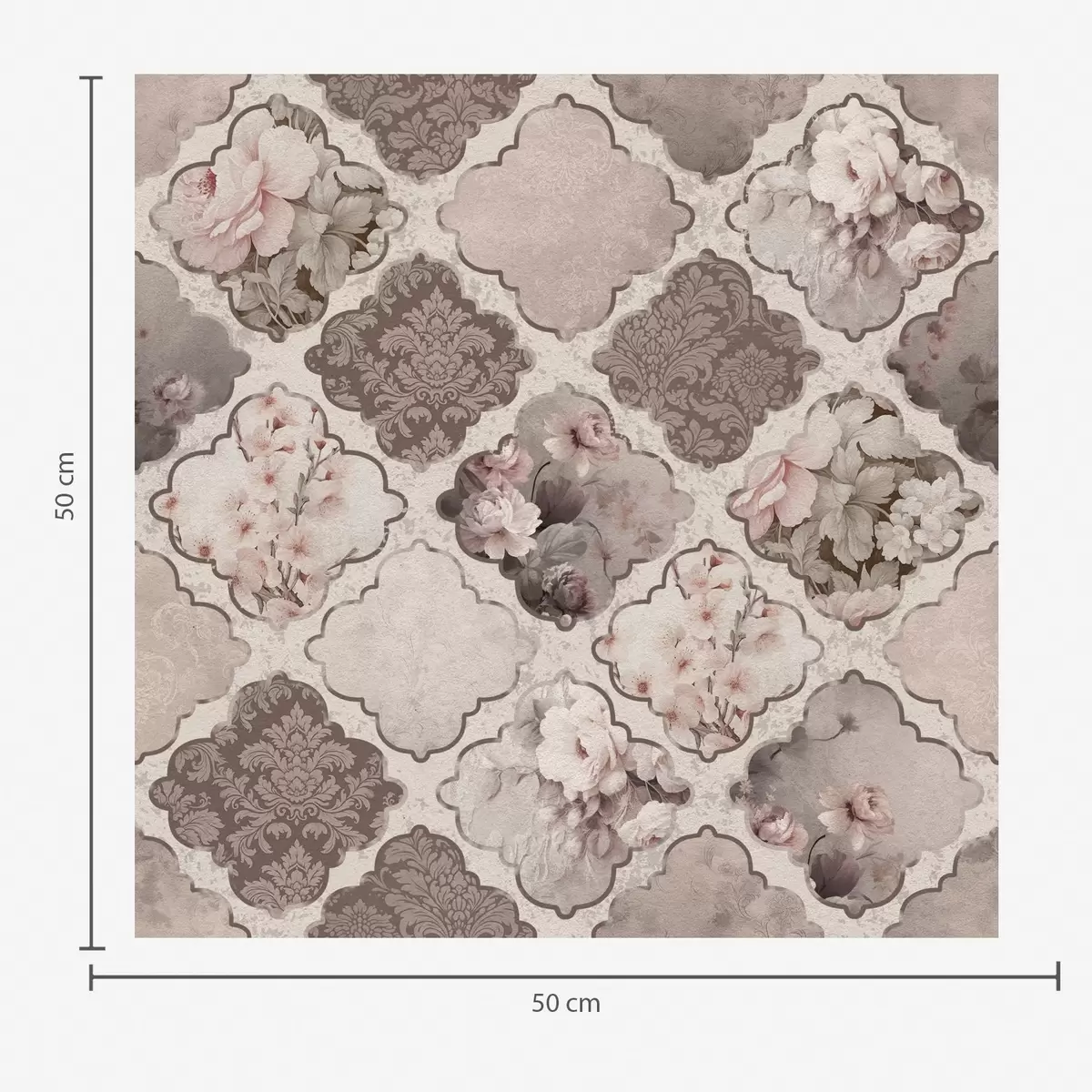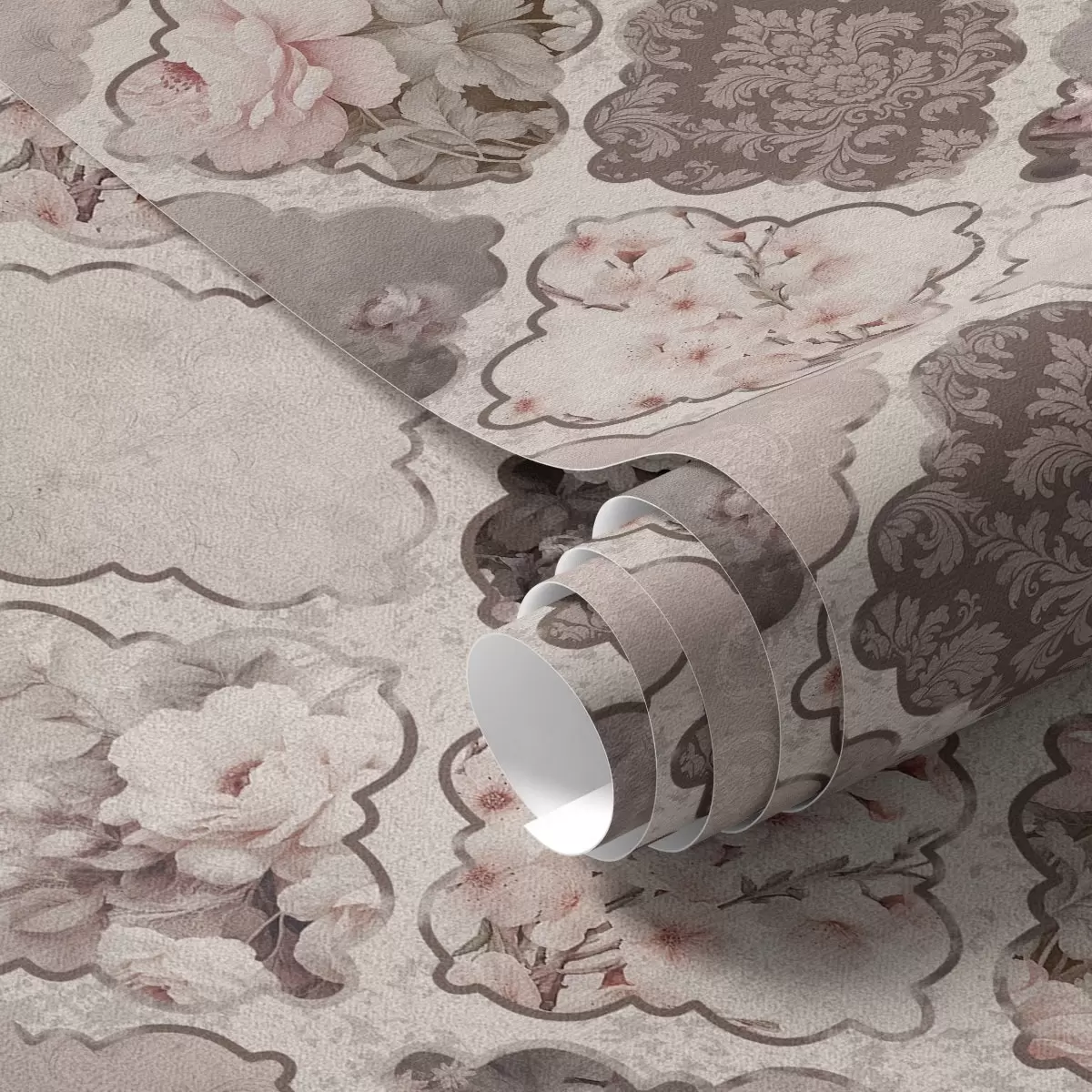Behang Romantisch patchwork van bloemenmedaillons in stoffige tinten Nr. a01027