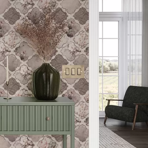 Behang Romantisch patchwork van bloemenmedaillons in stoffige tinten Nr. a01027